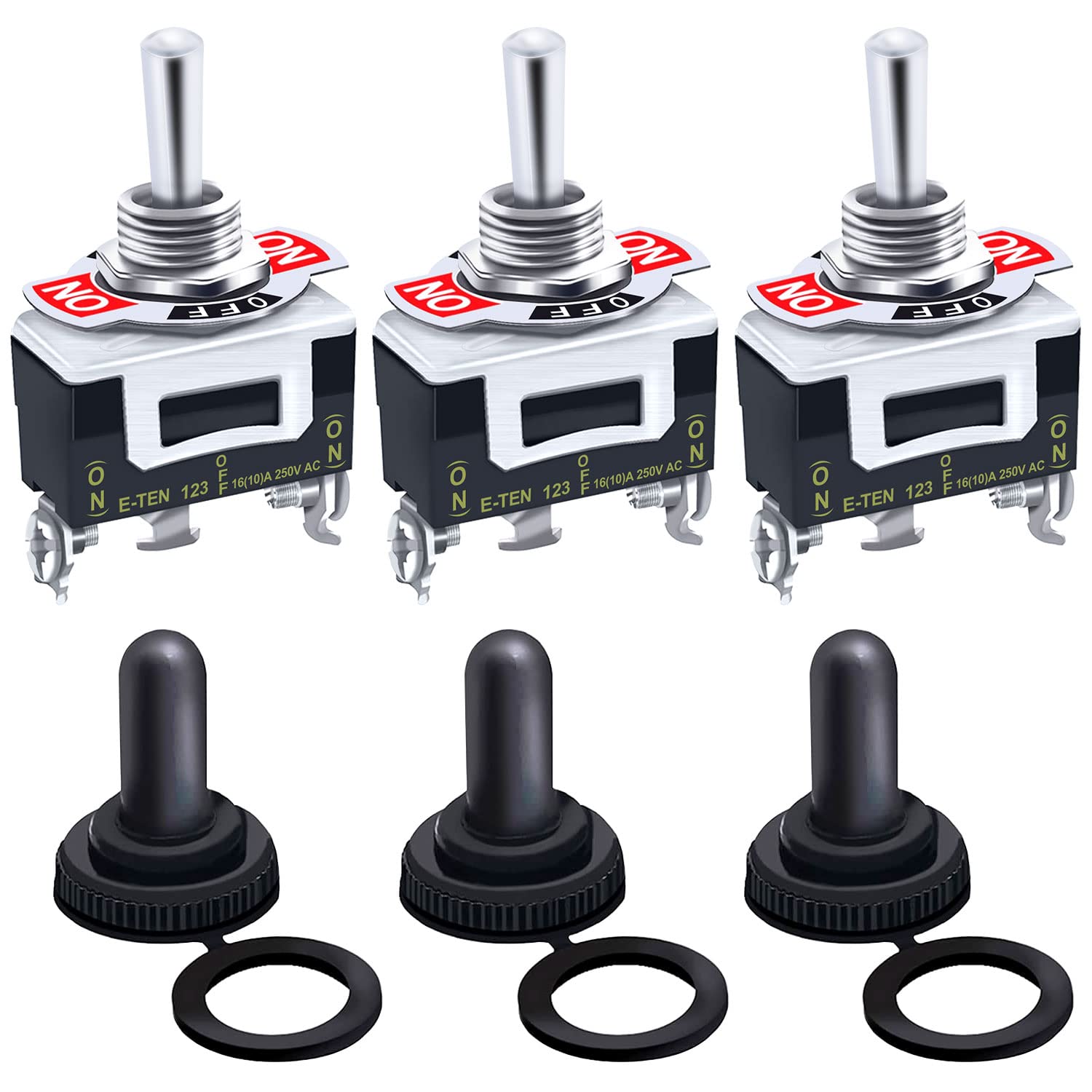 - Original Toggle Switches – /3Pcs Heavy Duty Rocker Momentary Toggle Switch 16A 250V AC SPDT 3 Position 3 Pin (ON)-Off-(ON) Switch with Metal Bat Waterproof Boot Cap Cover Ten-123-B123 by Twidec