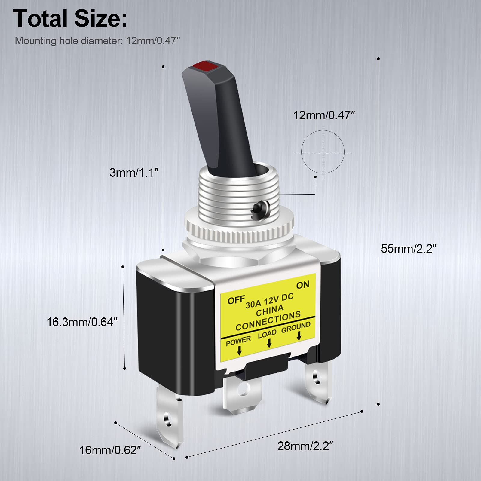 - Original Toggle – /3Pcs Rocker Lighted Toggle Switch 30A 12V DC SPST ON/Off 3Pin Car Automotive Boat with Red LED Illuminated Light by Twidec