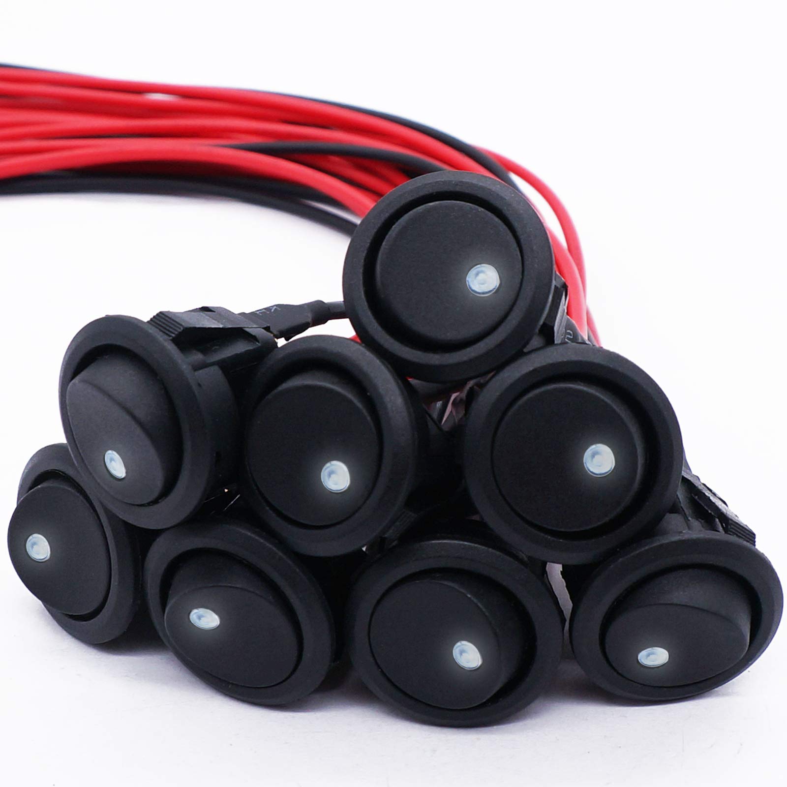 - Original Toggle – /8Pcs SPST Round Dot Lighted Rocker Switch Toggle Control for Car Or Boat 20A 12V DC On/Off White LED Light with Pre-soldered Wires KCD2-102N-W-X by Twidec
