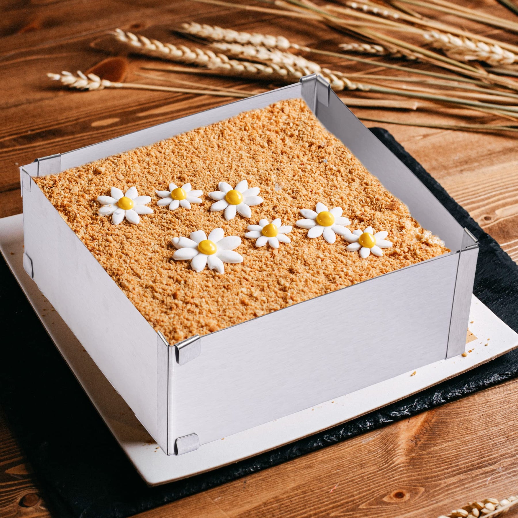 - Original Cake Rings – Stainless Steel Cake Ring Square Cake Mousse Mold Ring Cutter, Adjustable from 6 inch to 11 inch by TXIN