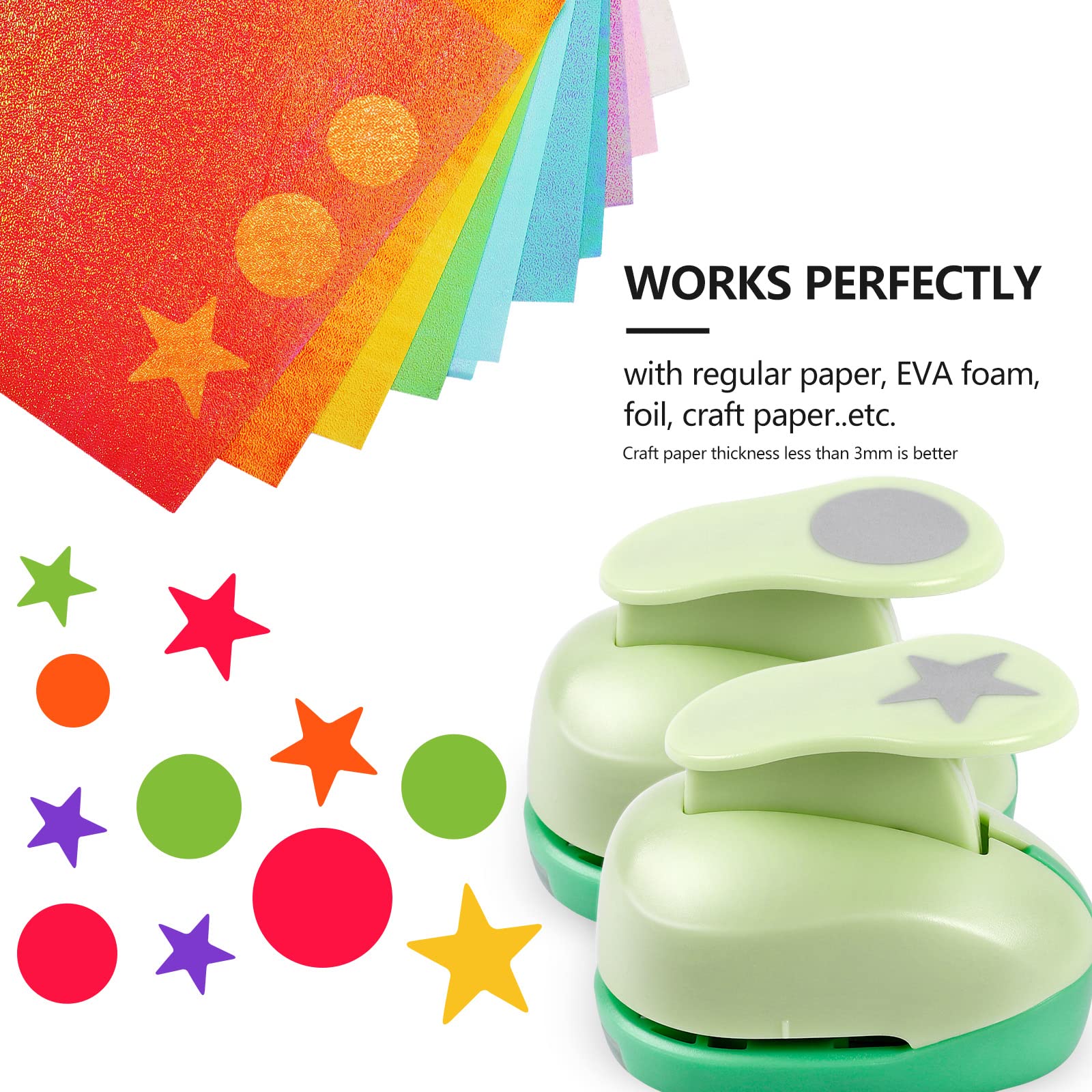 - Child-friendly Punch : Ergonomic handle of star punch & circle hole punch could not cause a paper jam, so you could punch out paper stars and paper circles easily and quickly with a nice look. Craft hole punch with compact size and spring-operated design fit for kid's small hands, easy to use. And a narrow slot to avoid hurting the fingers