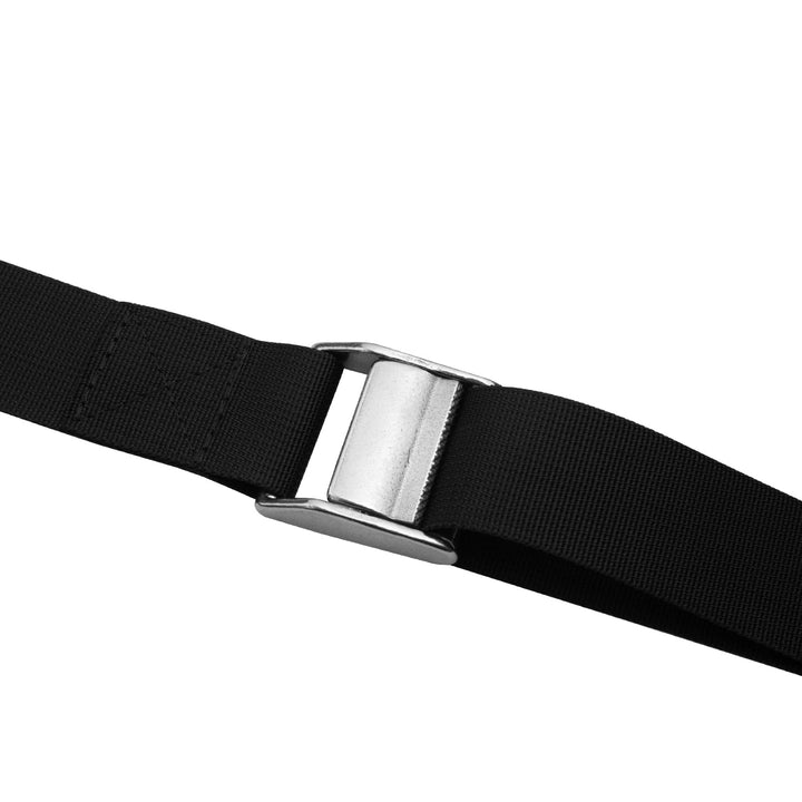 - Battery tie down strap kits include 1pcs 56''nylon webbing, 1 pcs stainless steel 316 cam buckle , 2 pcs stainless steel 316 eye strap mounts and 4 pcs SS screws .