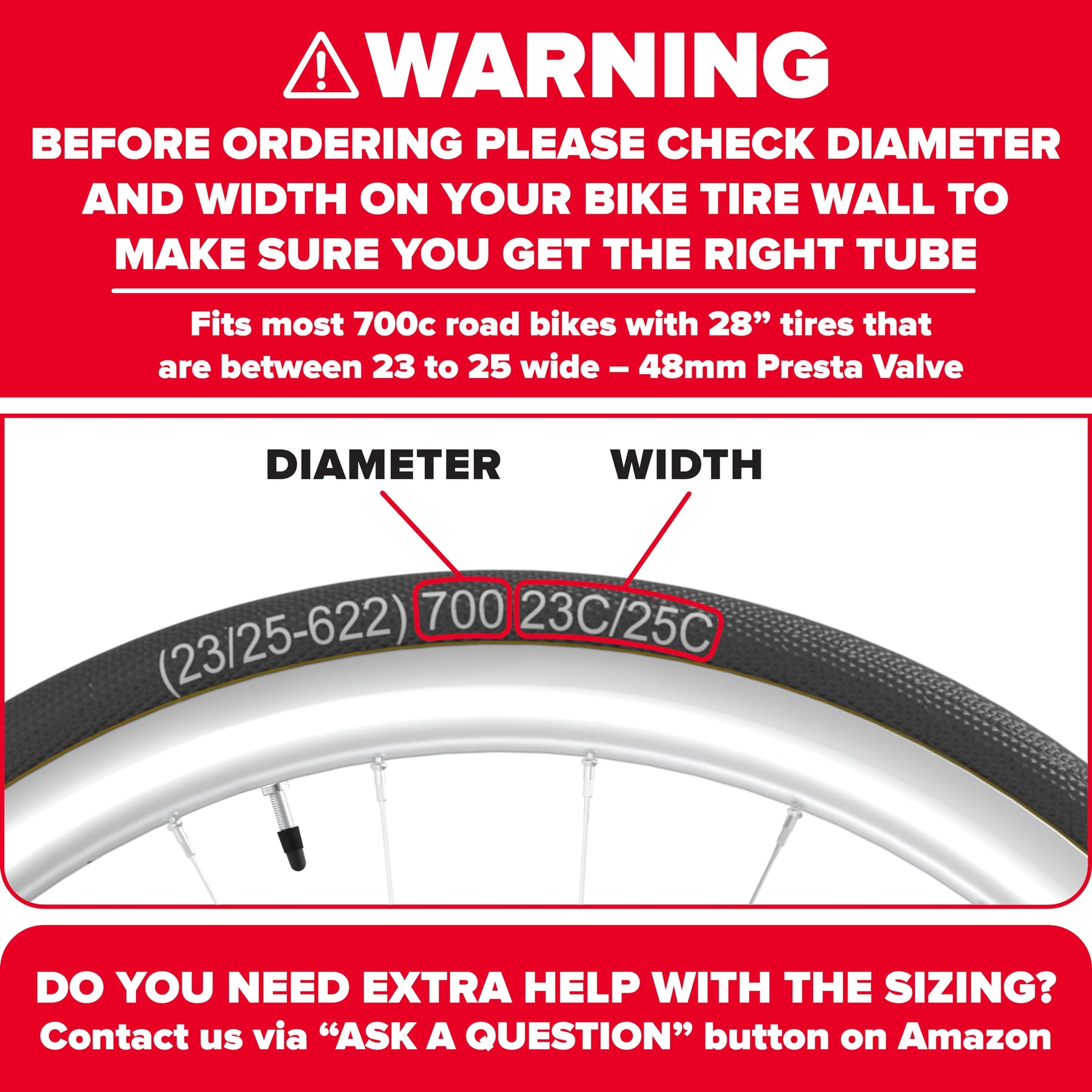 - Original Tubes – Bike Inner Tube for 700x23-25c, 28 inch Bicycle Wheel Sizes with 48mm Presta Valve - Butyl Rubber Tubes for Road and Gravel Bikes - 2 Tubes with 2 tire levers Included by Ultraverse