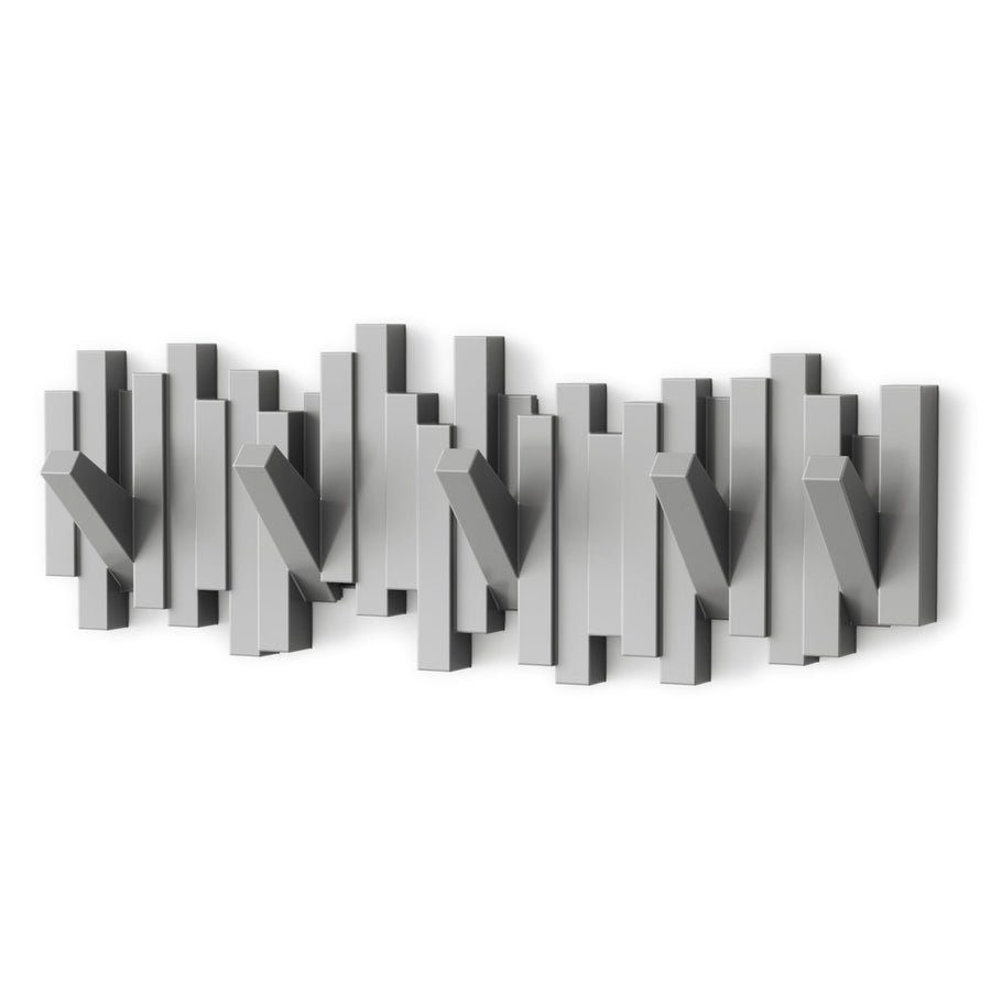 - Original Coat Hooks – Sticks Wall-Mounted Coat Rack Rail Hook with 5 Retractable Pegs – Modern, Space-Saving Storage Organizer, Grey by Umbra
