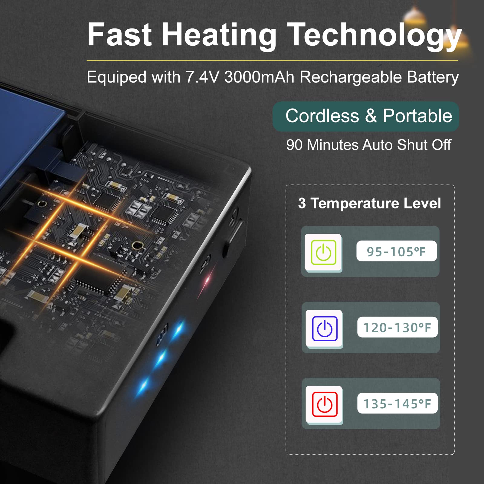 - Weighted Design & Cordless: This weighted heating pad inner features 1.4lb evenly distributed flax-seed, which helps it maintain natural contact. Different from other heat pads restricted by plugs, UNCN's electric heating pad is powered by a 7.4V 3000mA power bank that you can carry for doing other things.