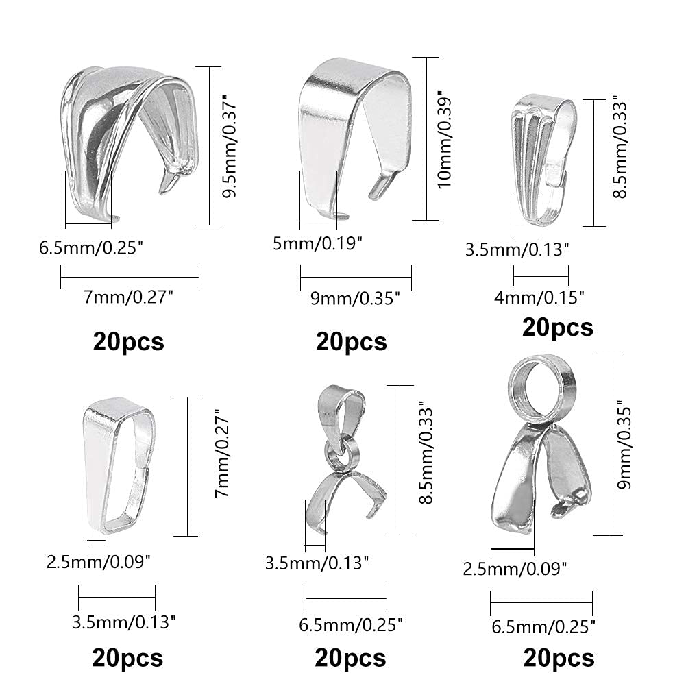 - 6 SIZES PENDANT PINCH BAILS: There are 6 different sizes ice pick pinch bails, about 7~10mm long, 2.5~9mm width, 2.5~6.5mm thick, hole: 2.5~8mm; Package include: 120pcs pendant pinch bails; more size pendant clasp connectors bails can meet your different DIY craft needs.