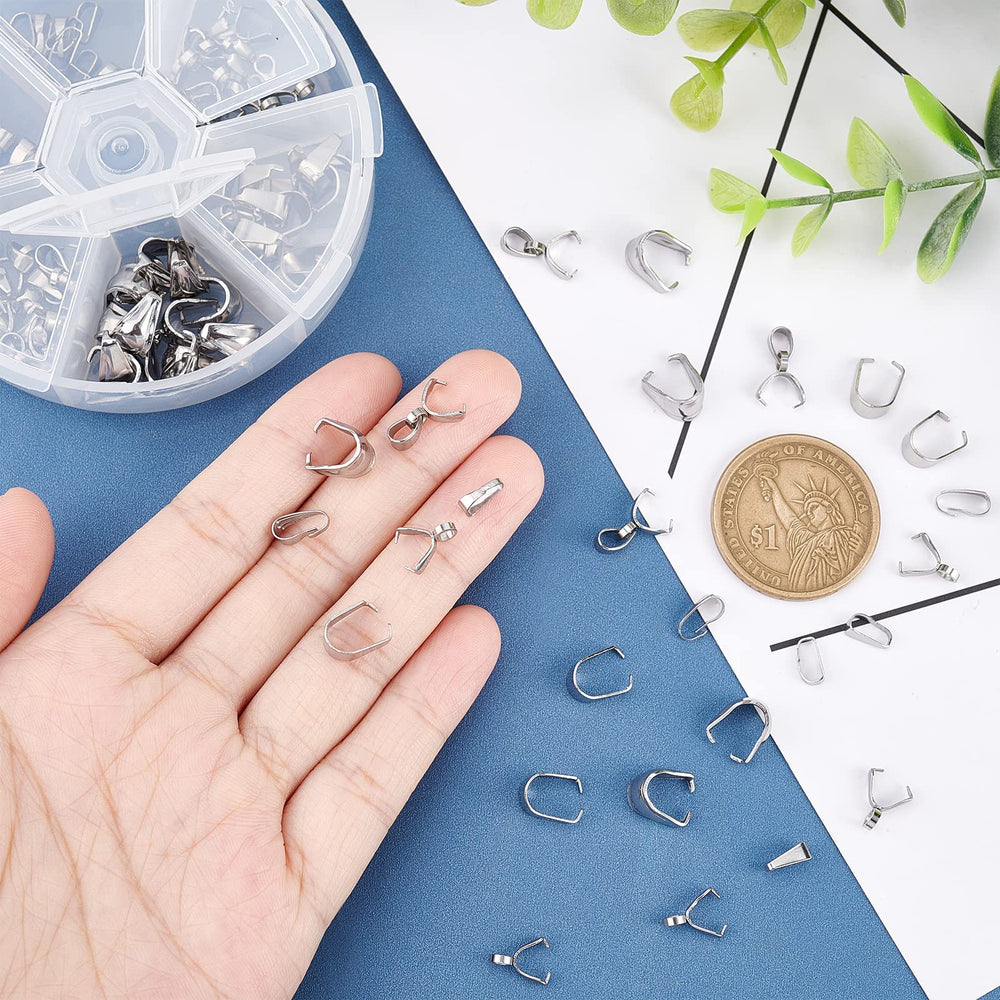 - Original Jewelry Clasps – 120pcs 6 Styles 304 Stainless Steel Pendant Pinch Bails Ice Pick Pinch Bails Clasp Dangle Charm Bead Pendant Connector Bails for Jewelry Making 7-10mm Long by UNICRAFTALE