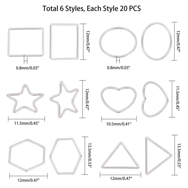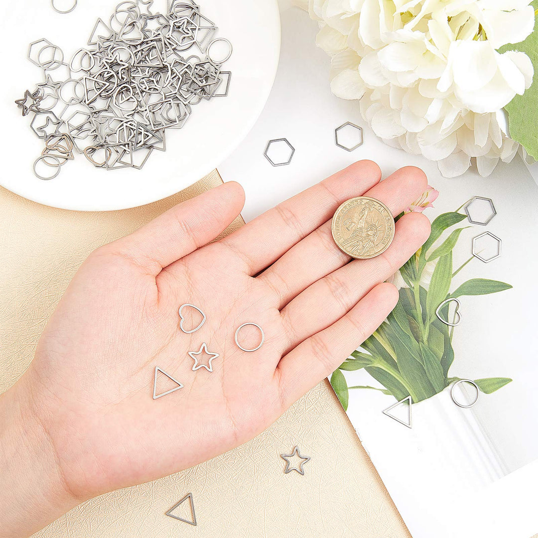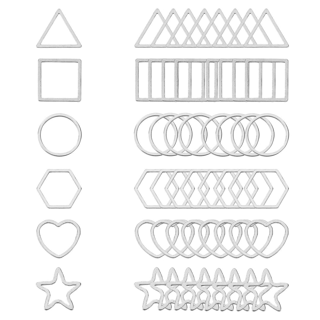 - Original Charms – 120pcs 6 Styles Stainless Steel Linking Rings Square & Ring & Star & Heart & Hexagon & Triangle Frames Connectors Metal Jewelry Connector Links for Women Jewelry Making by UNICRAFTALE