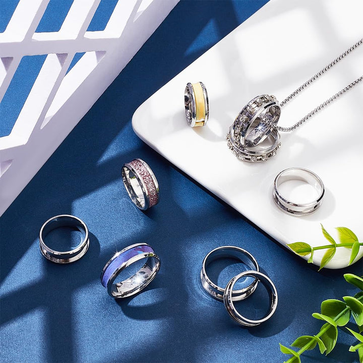 - Easy to Use: The ring core blanks are designed with groove settings for inlay crafts. You can inlay curb chain, stones, rhinestone, diamond, crushed opal, wood, chip gemstones etc to DIY personalized finger rings.