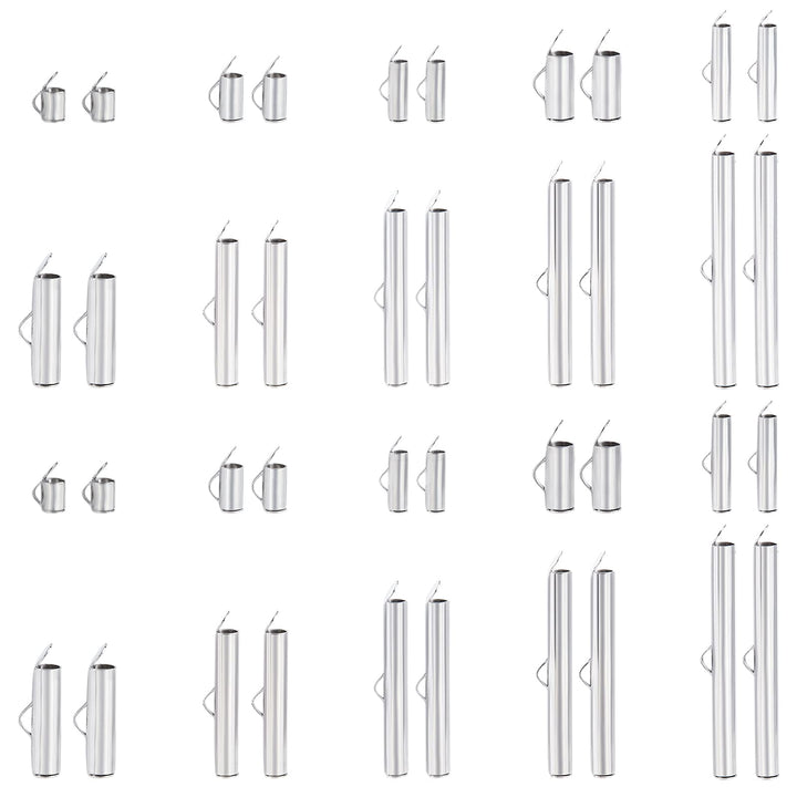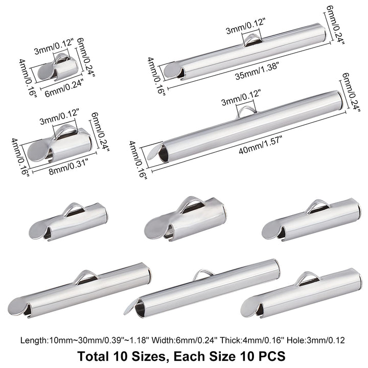 - Original Jewelry Clasps – About 100pcs 10 Sizes Slide On End Clasp Tube Buckle Clasps Stainless Steel Slider End Caps Clasps Jewelry Accessories Findings, Stainless Steel Color 6-40mm Long by UNICRAFTALE