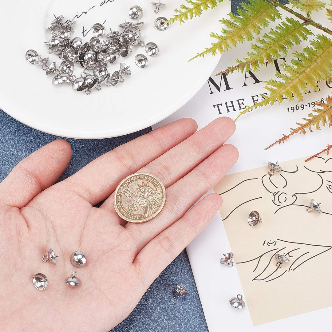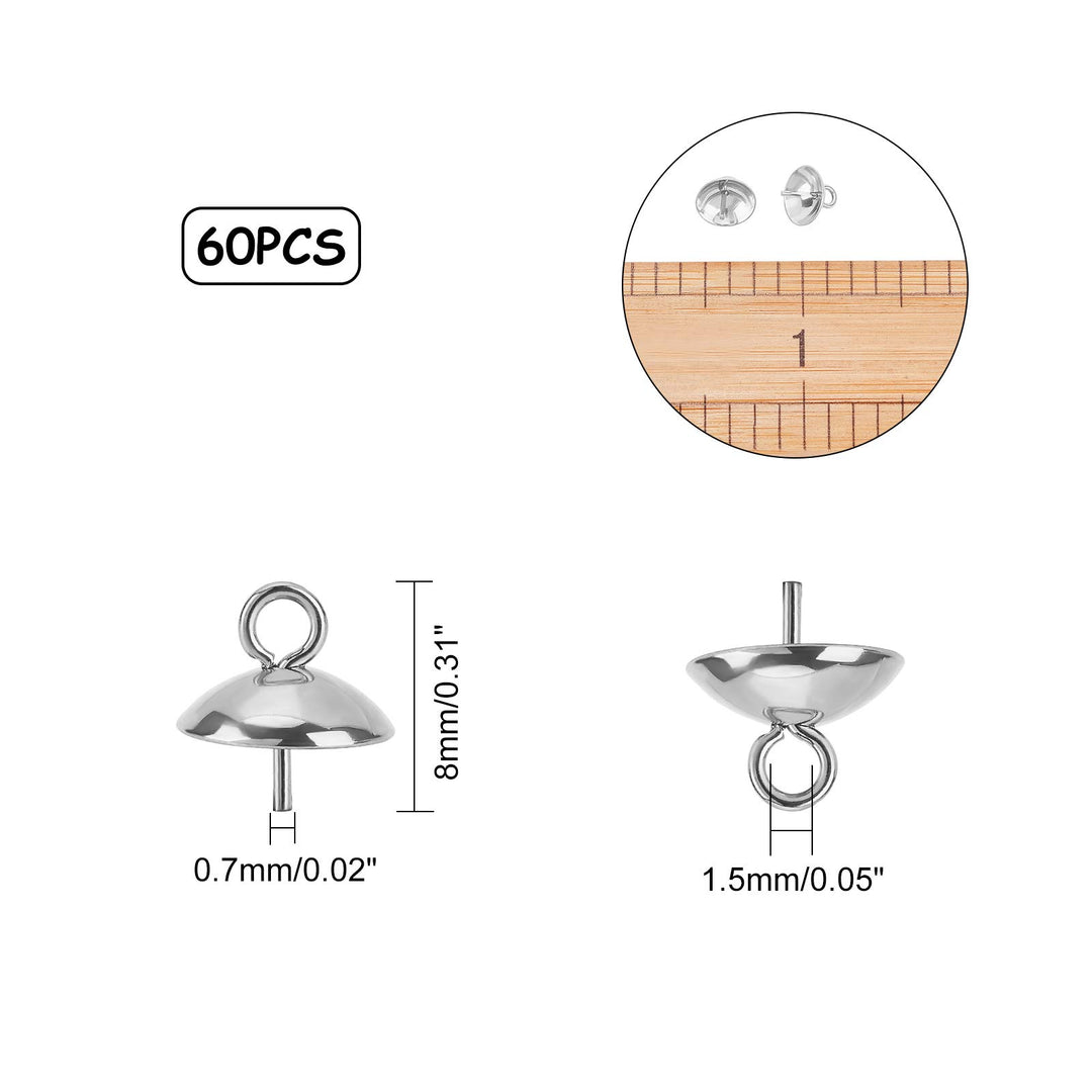 - What You Get: Contains 60 pieces stainless steel cup pearl peg bails, enough for your daily use; Peg Bails Size: about 8mm in diameter; pin: 0.7mm, hole: 1.5mm, suitable size for jewelry making.