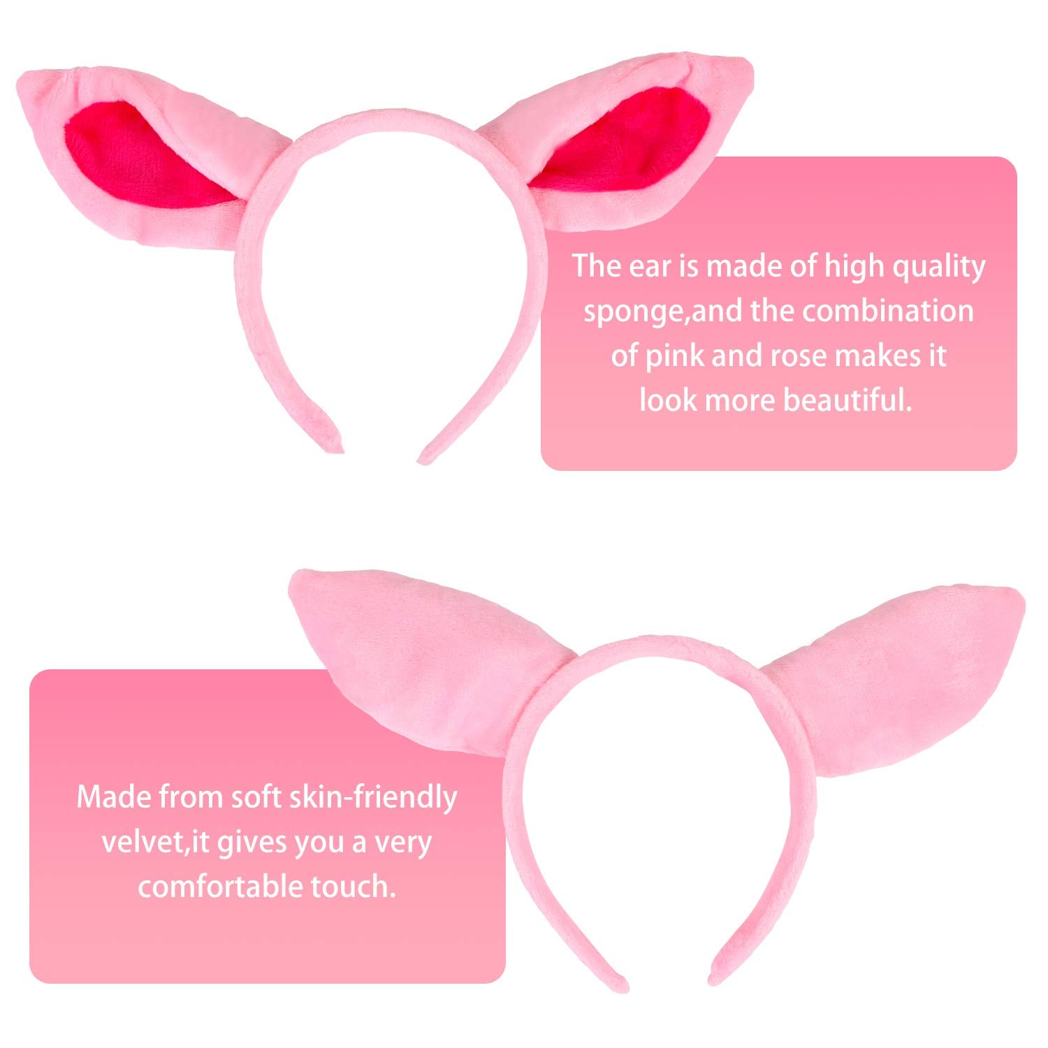 - Pink Pig Fancy Set Costume Kit Party Accessories:Package includes pig ears headband, pig nose, pig tail and bow tie with a white elastic band.One size fits age 3 and up - children to small adult.