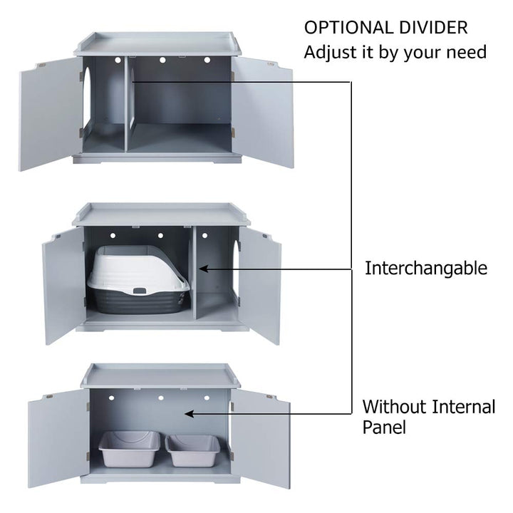 - DURABLE DESIGN: Crafted with strong and durable pressed wood. Accommodate most of the litter boxes.