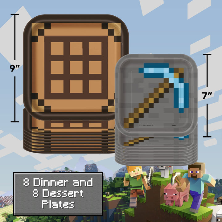 - Original Party Packs – Minecraft Party Table Decorations Dinnerware Bundle - Officially Licensed Dinner and Dessert Paper Plates, Luncheon and Beverage Paper Napkins and Table Cover by Unique