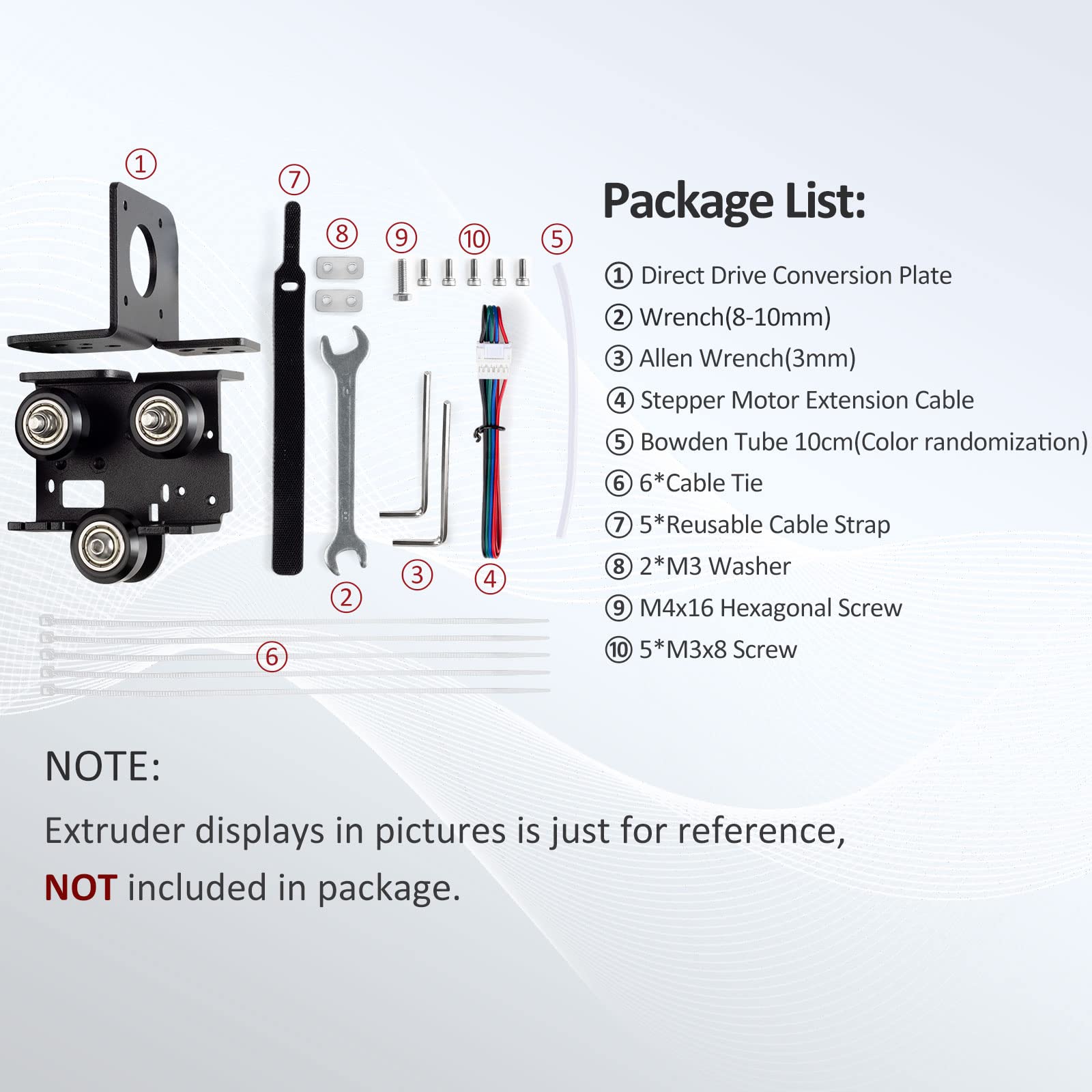 - Application:The direct drive upgrade kit is suitable for Ender 3 V2,Ender 3 Pro,Ender 3,Voxelab Aquila 3D printers,NOT compatible with Ender 3 Max,Ender 3 Neo,Ender 3 V2 Neo,NOT compatible with TITAN extruder.NOTE:Extruder or hotend are NOT included in the package;For Ender 3 V2 users, you can print the following fan cover(STL:5340394)
