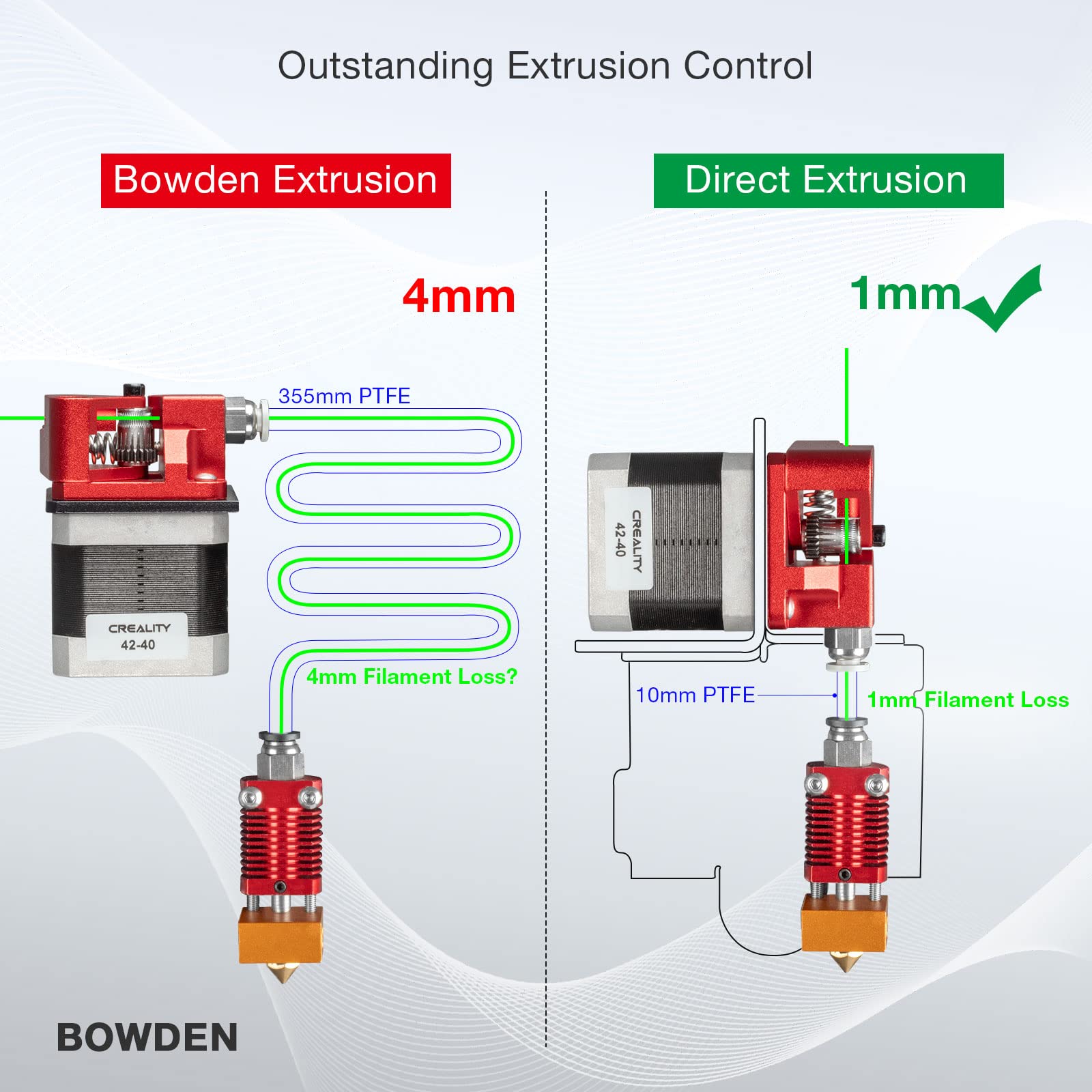 - Outstanding Extrusion Control:A direct drive extruder improves extrusion and retraction by removing the need for the Bowden (PTFE) tube. It provides precise retraction and a better print result.