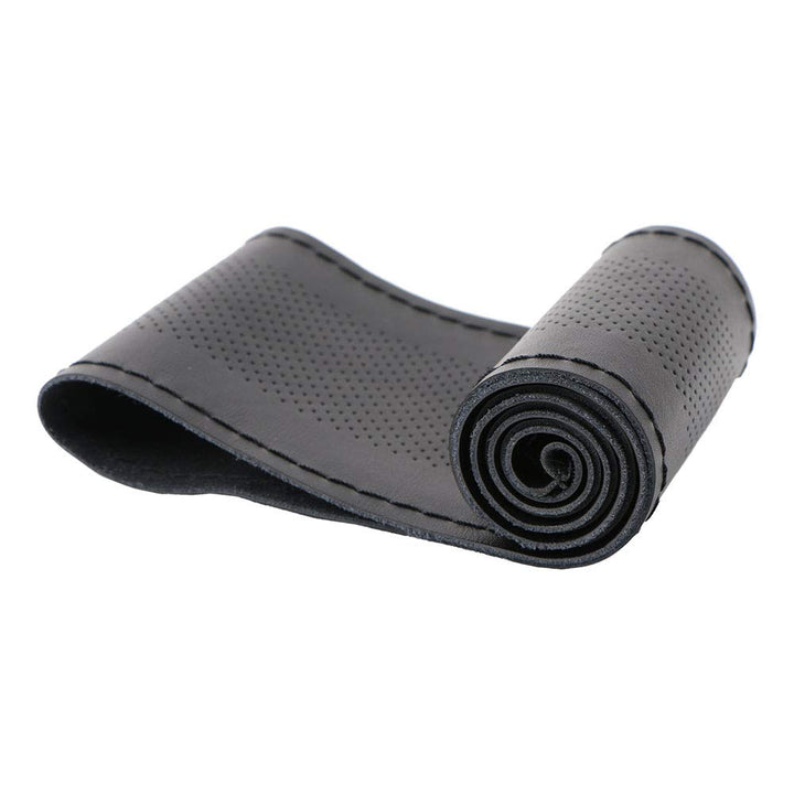 - The black genuine leather steering cover is a nice addition to already black interior of car.