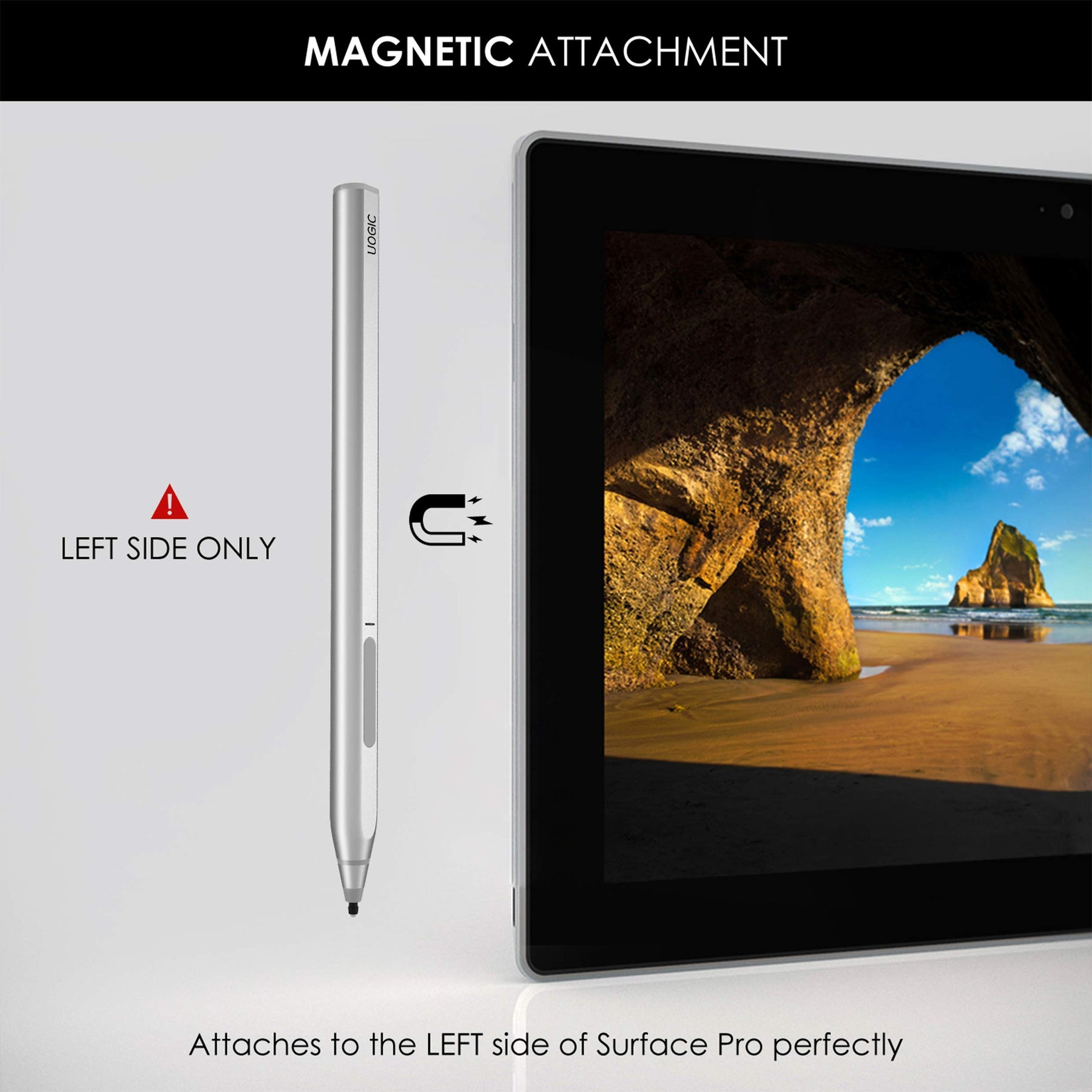 - Ergonomic and Magnetic Design: Features an ergonomic design that rests naturally against the curves of your hand. The stylus also features a simple, one-touch operation button. Furthermore, a built-in magnetic attachment connects firmly with the left side of the surface device.To firmly attach to your Microsoft Surface tablets with stronger built-in magnet.