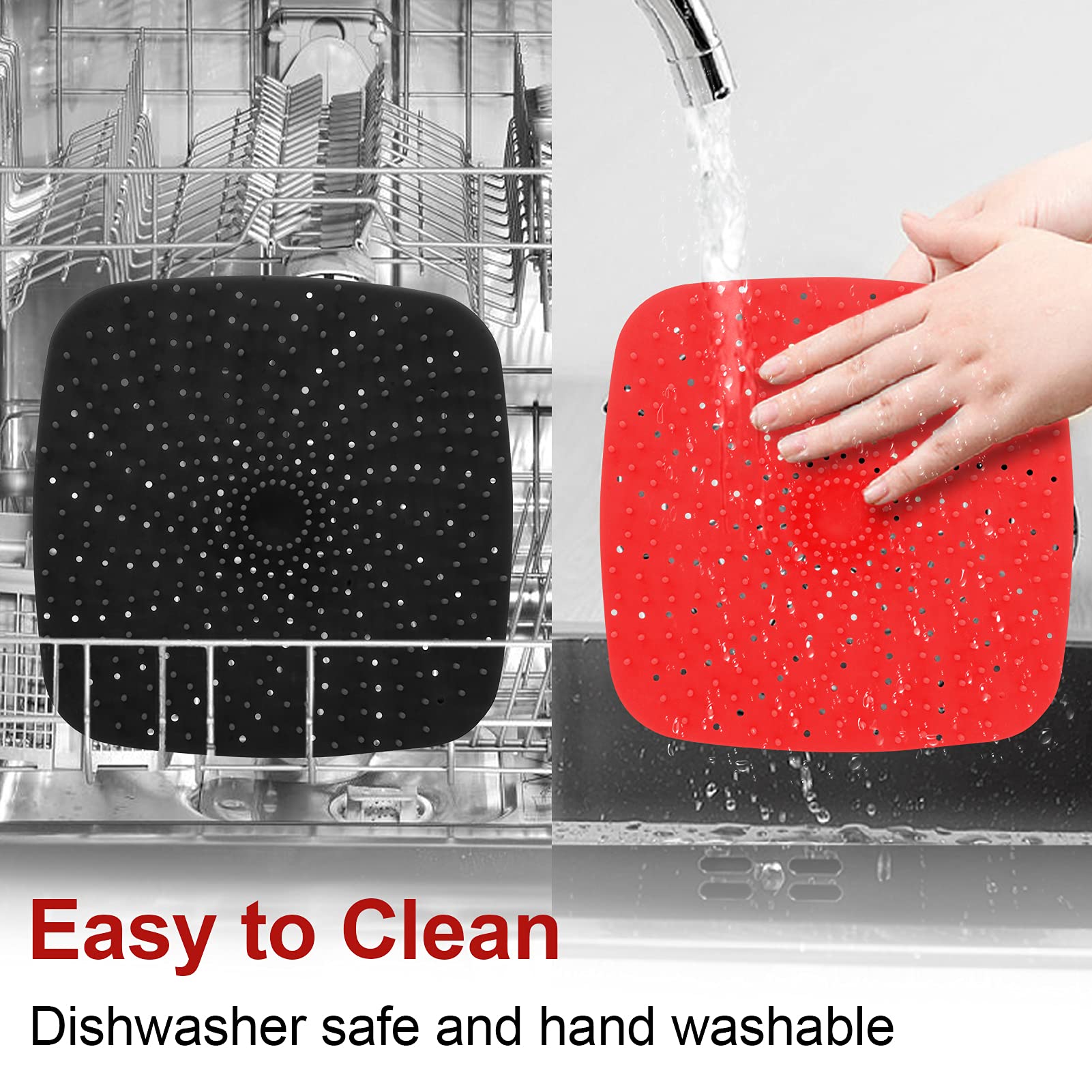 - Smart Design – Soft silicone raised dots, 0.25 inch raised, and the improve airflow so cook food quickly and evenly. The tray lifts to separates food from the air fryer mat to prevent the food from sticking to the liner which may making the mat clean difficulty.