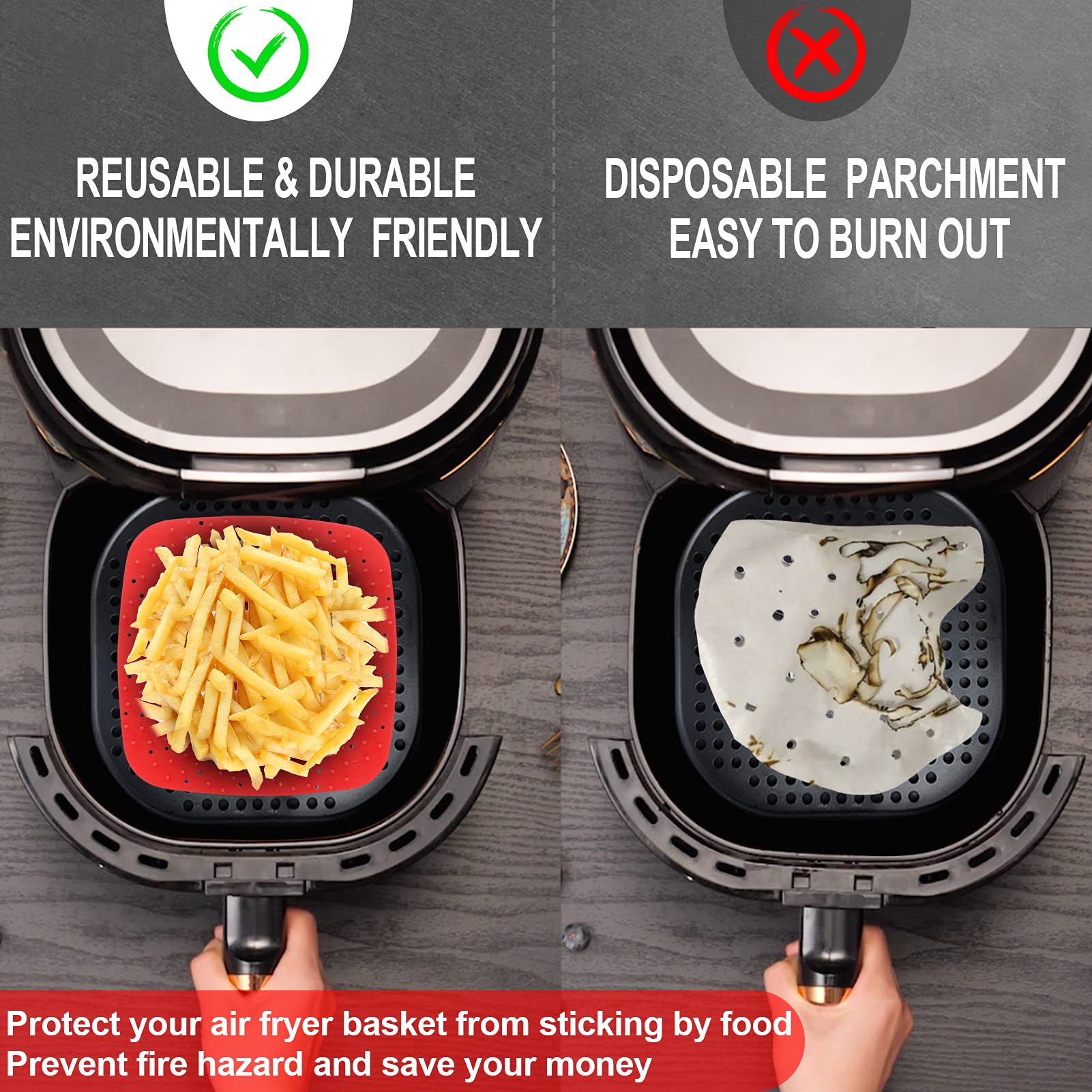 - Ideal Replacement of Parchment Paper Liners - Save money on throwaway parchment paper or replacement air fryer basket. Our reusable air fryer liners are designed to protect your air fryer basket from sticking by food. It can also be used in the basket which the coating already came off, you don’t need to purchase the expensive replacement basket.