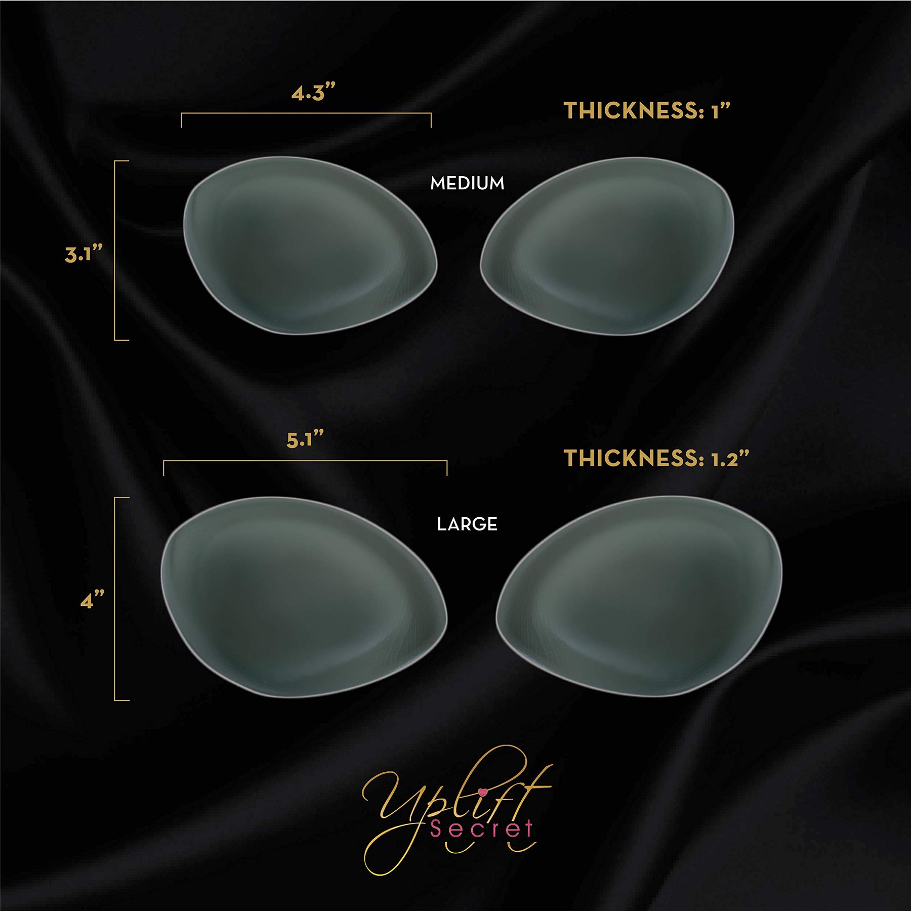 - [CHOOSE YOUR SIZE]: MEDIUM (4.3 x 3.1 x 1) recommended for A-cup - LARGE (5.1 x 4 x 1.2) recommended for B to D cups. Medium = 5oz per pair, Large = 8.5oz per pair. We offer a Medium and Large size so that you can choose the one that fits you best! We know that women are not one-size-fits-all, so our bra inserts are designed to satisfy women of all curves and sizes!