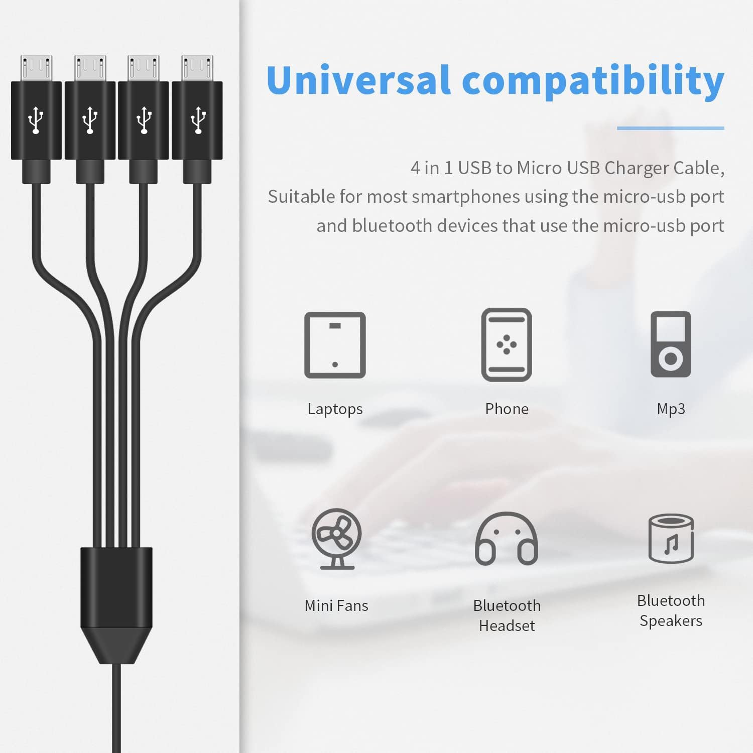 - Original USB Cables – USB A to USB Micro Charging Cable, 4 in 1 Multi Charger Cable Micro USB Splitter Cable 4 Ports Micro USB 2.0 Male-Male Charging Cord Adapter Connectors for Cell Phones and More (Black 1.8M) by Vrllinking