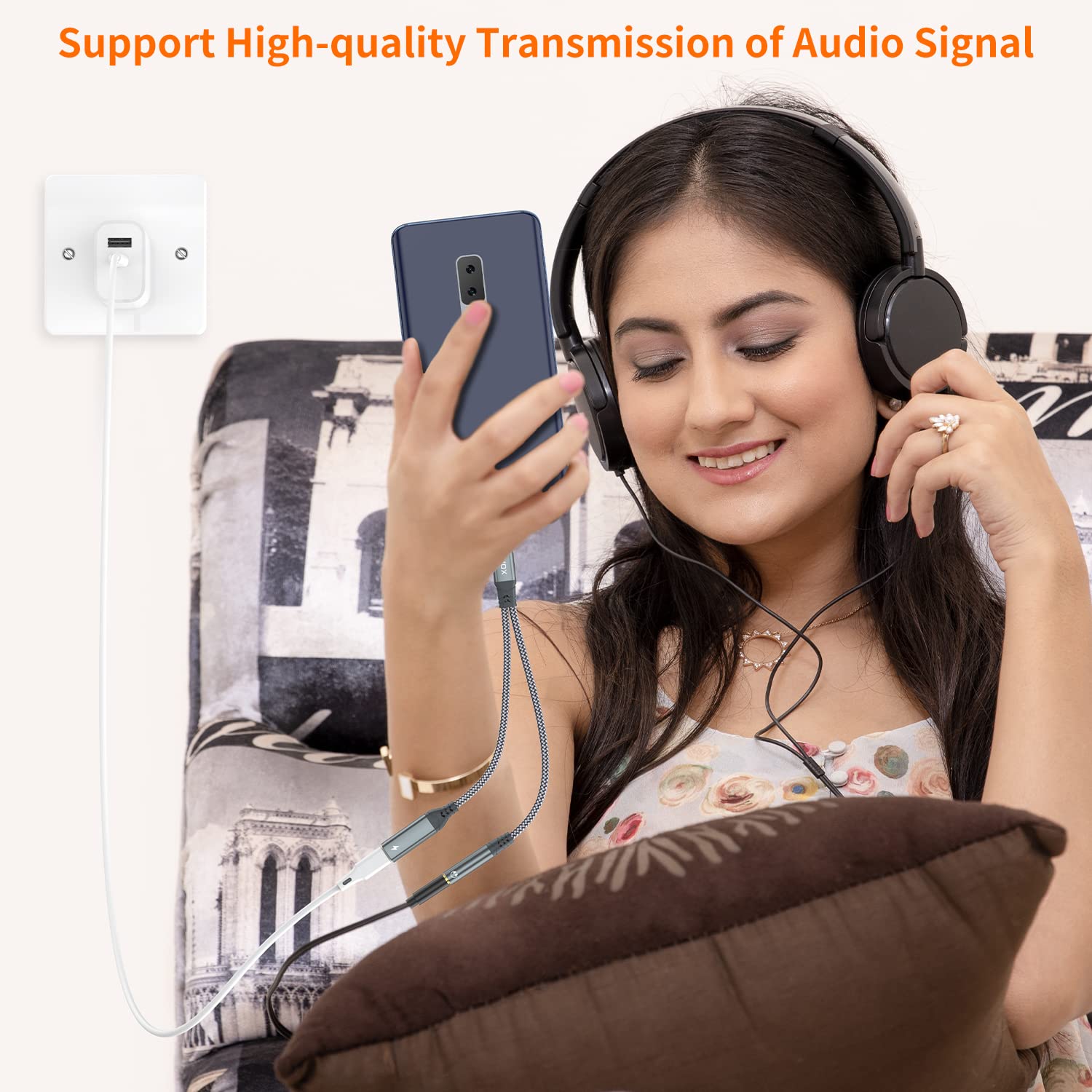 - 2-in-1 charging/audio: Splits your USB-C port into a PD-compatible USB-C port and a 3.5mm audio jack, allowing you to listen to music, play games, calling or watch videos while fast -charging your device. NOTE: Does NOT support data transfer.