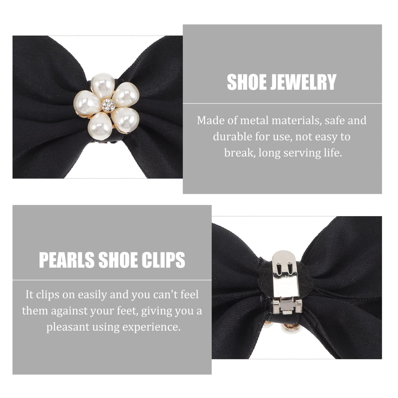 - Original Shoe Decoration Charms – 1 Pair Bow Shoe Clips Removable Shoe Charms Pearls Shoe Buckle Bowknot Dress Shoes Jewelry Decorative Shoe Accessories for Wedding Party Prom Decoration (Black) by USHOBE