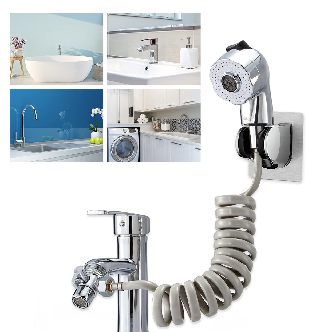 - Original Handheld Showerheads – Sink Faucet Rinser for Dog Baby Hair Washing Kitchen Bathroom Sink Bathtub Extension Sprayer Set with Recoil Hose & Shower Holder & Water Diverter, Polished Chrome by USLICCX