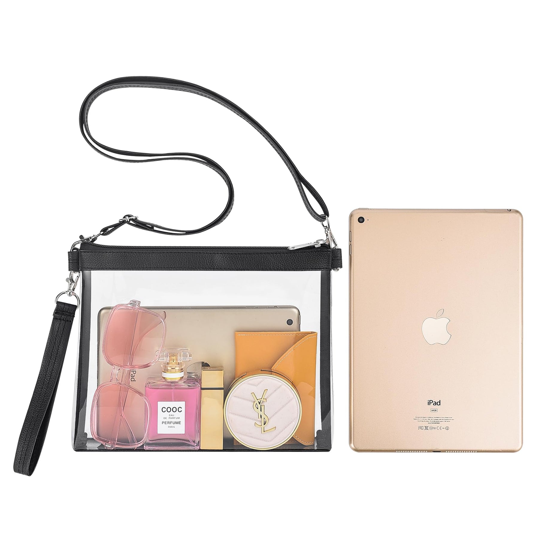 - Adjustable Strap & Detachable Wristlet: The shoulder strap measures 24-57 inches long which is enough for you to carry the bag as a shoulder bag or crossbody bag. Also, you can use it as a clutch with the wristlet. The strap and the wristlet of the clear bag are detachable and you can change in your favorite straps to make the purse more personalized.