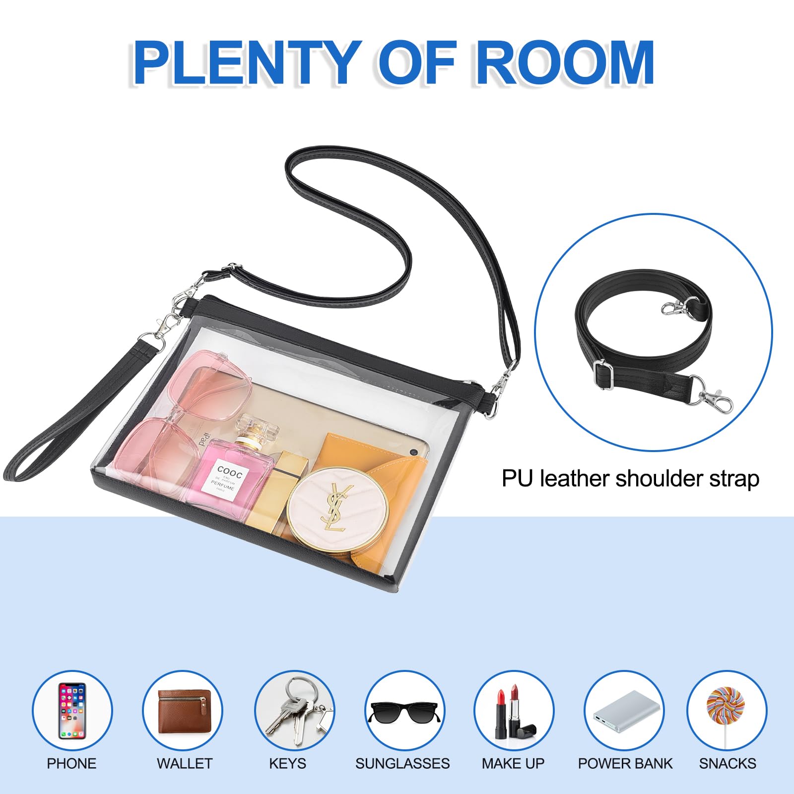 - Quality Material: The clear crossbody bag helps protect your belongings in wet conditions with wrist straps and adjustable shoulder straps made of thick nylon. The shoulder strap and wrist strap can be removed.