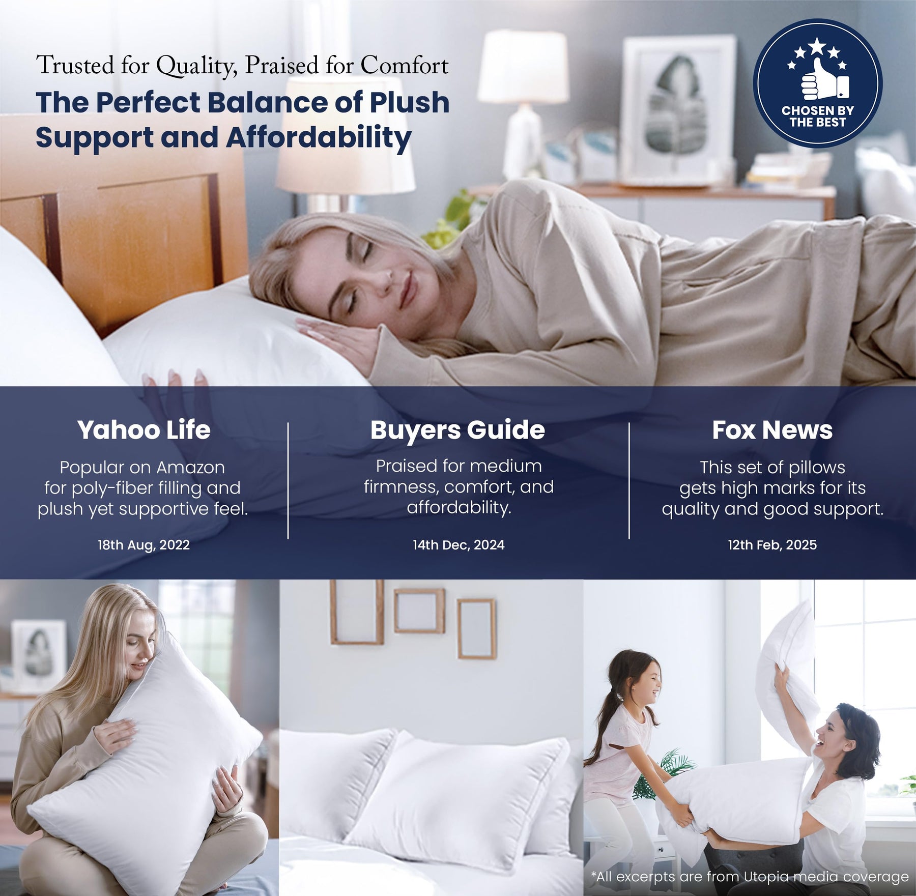 - Original Bed Pillows – Bed Pillows for Sleeping Queen Size (White), Set of 2, Cooling Hotel Quality, Gusseted Pillow for Back, Stomach or Side Sleepers by Utopia Bedding