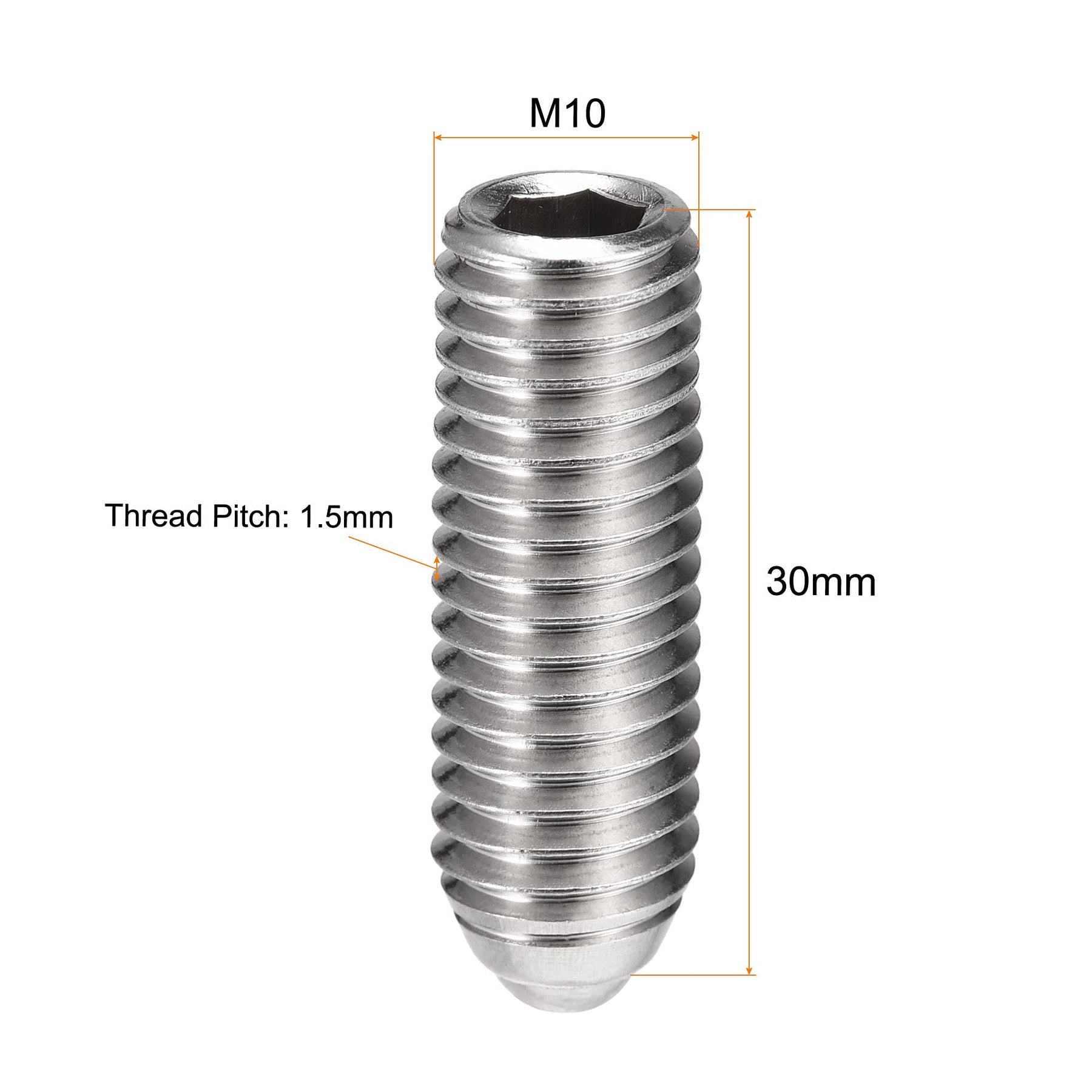 - Original Set Screws – Ball Point Set Screws, M10 x 30mm 304 Stainless Steel Metric Spring Hex Socket Screw 6pcs by uxcell