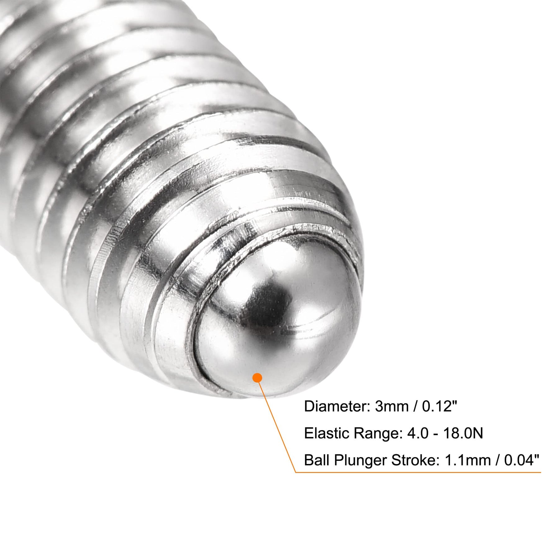 - Thread Size: M5 x 8mm; Elastic Range: 4.0 - 18.0N; Ball Plunger Stroke: 1.1mm / 0.04