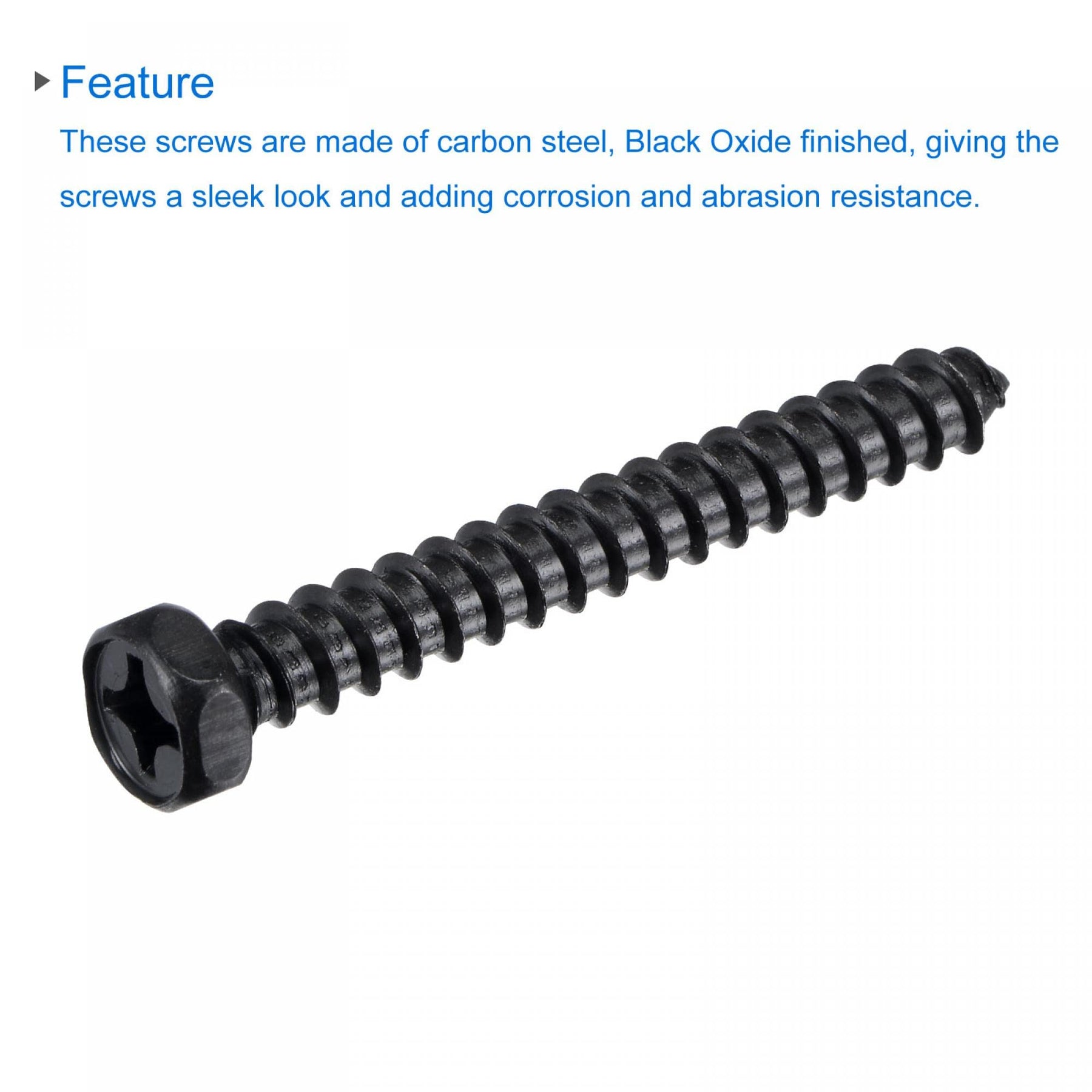 - Material: These screws are made of carbon steel, Black Oxide finished, giving the screws a sleek look and adding corrosion and abrasion resistance.