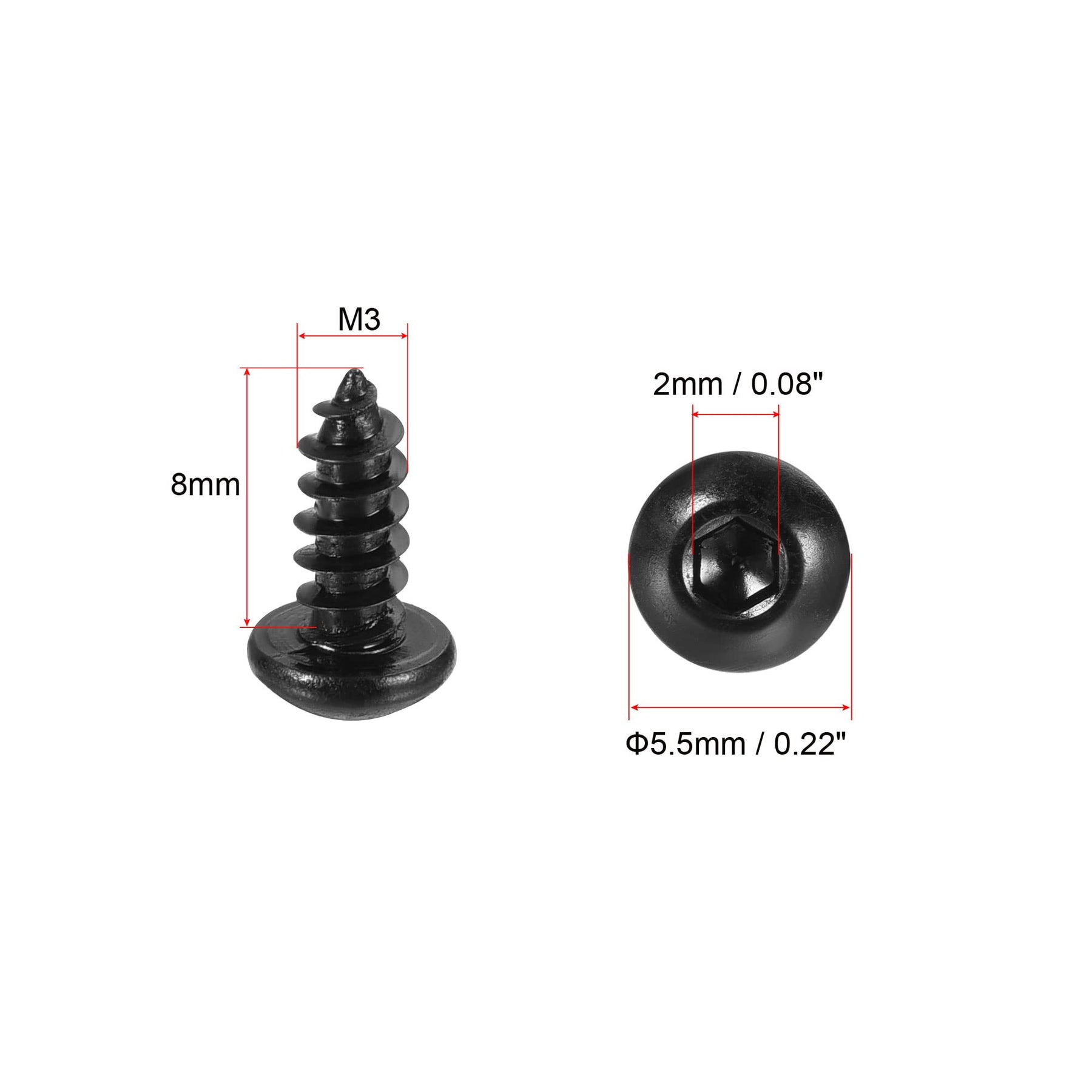 - Original Self-Tapping Screws – Hex Socket Self Tapping Screws, M3 x 8mm Carbon Steel Wood Screw 400pcs by uxcell