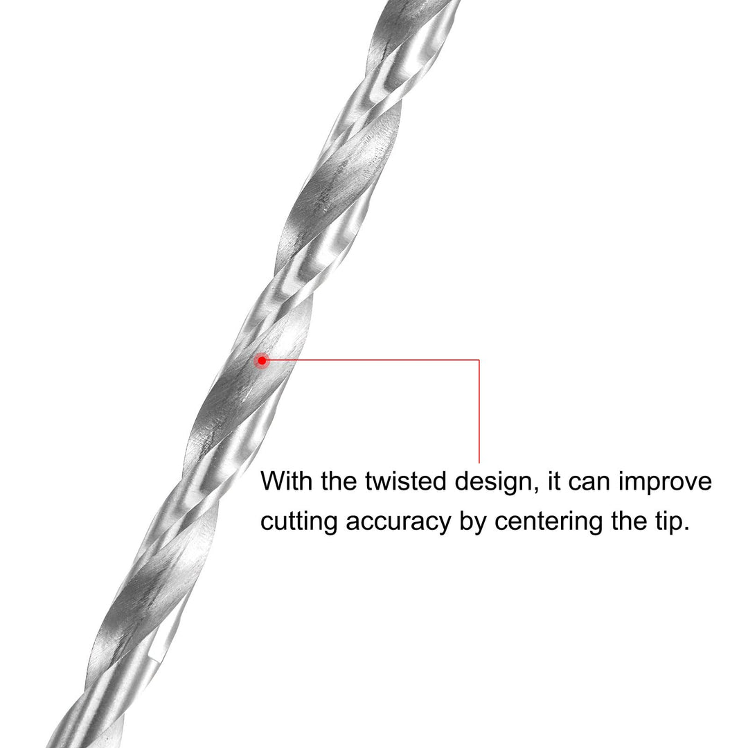 - [Twisted Design]- With the twisted design, it can improve cutting accuracy by centering the tip. It can avoid displacement of the drill bit during work, and at the same time remove debris and particles faster and easier.