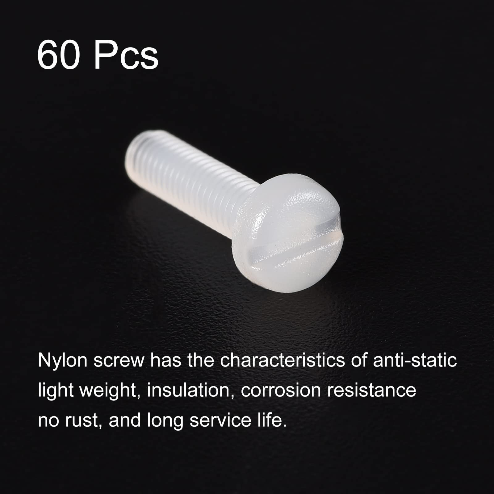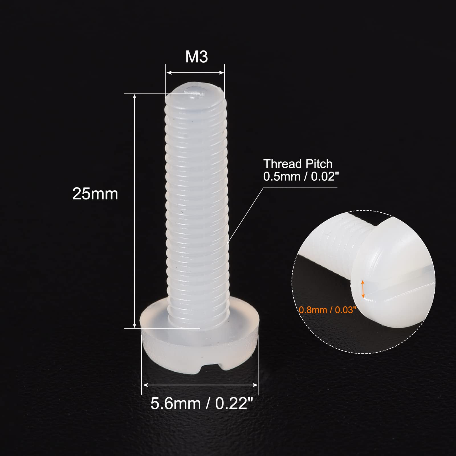 - Original Machine Screws – M3 x 25mm Nylon Machine Screws, Pan Head Slotted Screw Fasteners, 60pcs by uxcell