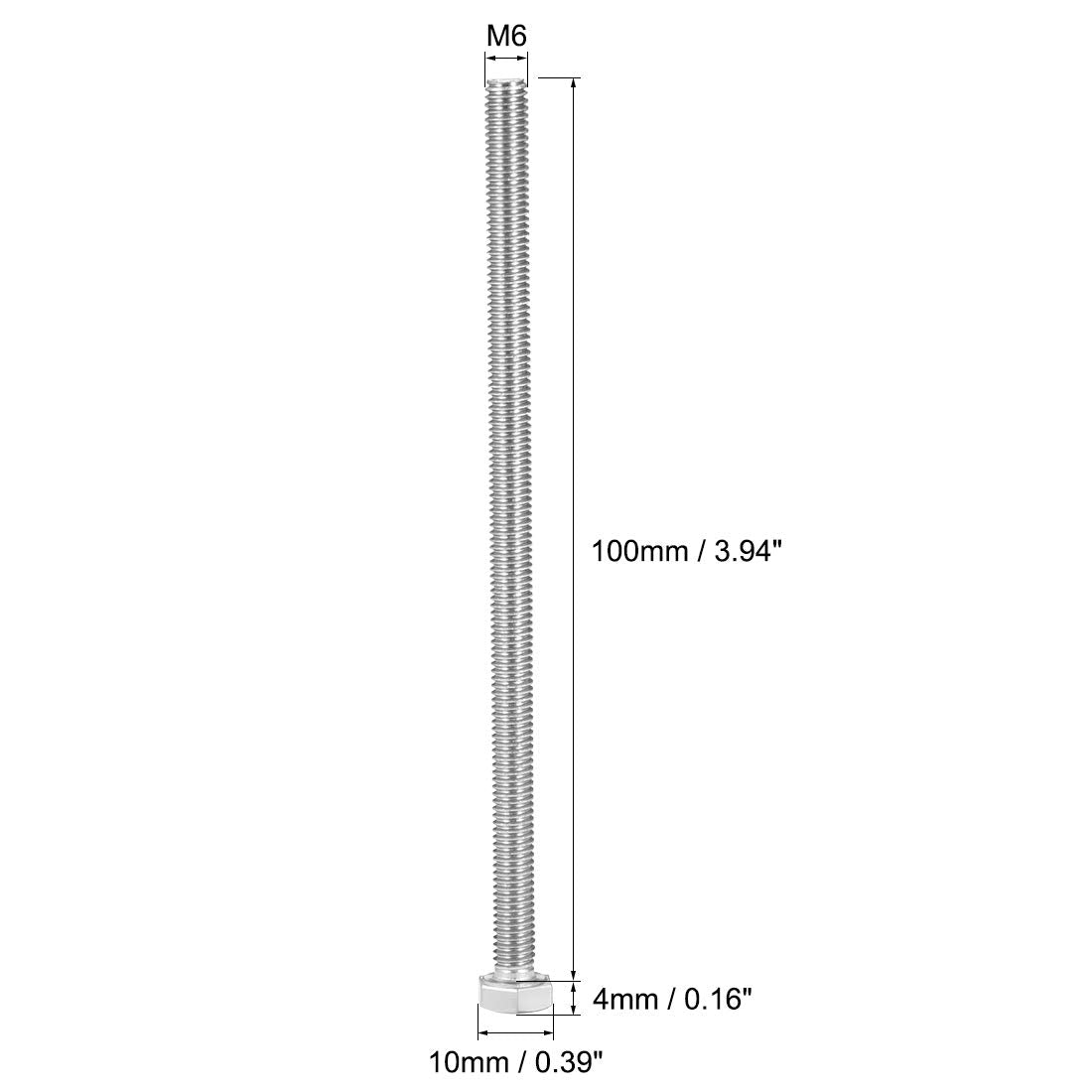- Product Name: Hex Bolts; Material: 304 Stainless Steel; Color: Silver Tone; Dimension: M6 x 100mm; Rod Length: 100mm / 3.94; Pitch: 1mm / 0.04