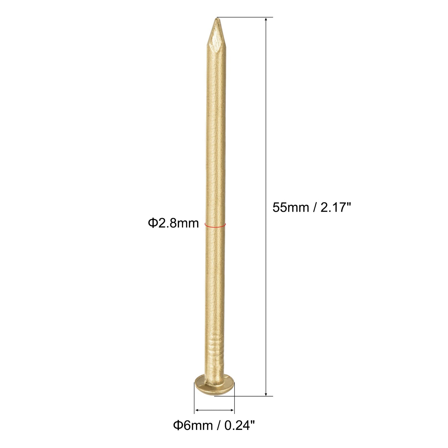 - Total Length: 55mm / 2.17; Rod Dia.: 2.8mm; Head Dia.: 6mm / 0.24; Package Content: 25pcs x Brass Tiny Nail