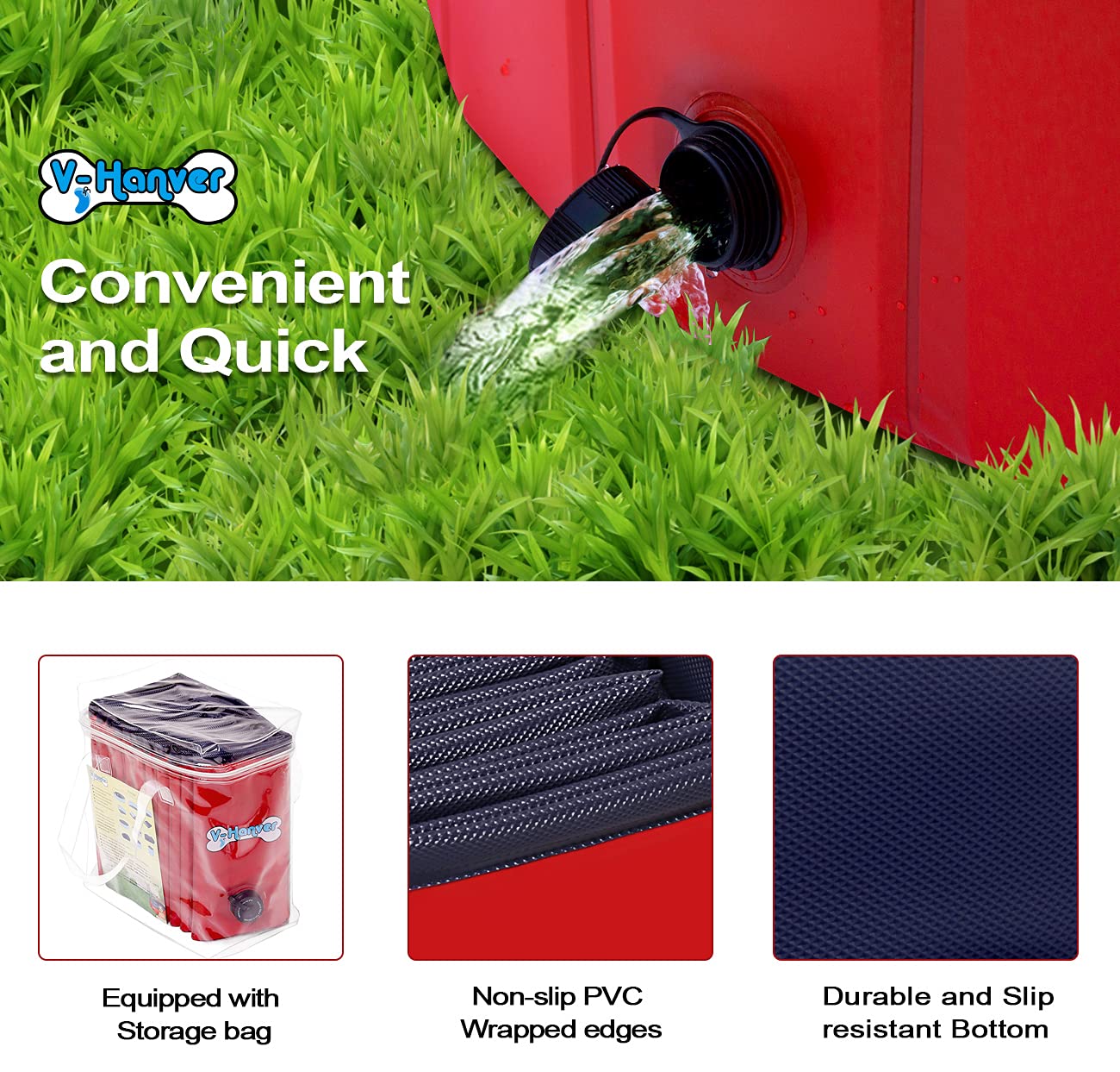 - PORTABLE & SIMPLE: the convenient fold-down design makes it simple to pack and store while not in use. Easy to organize, storage, and carry with the EVA bag. A built-in drainage hole makes draining the water fast and refreshes the water