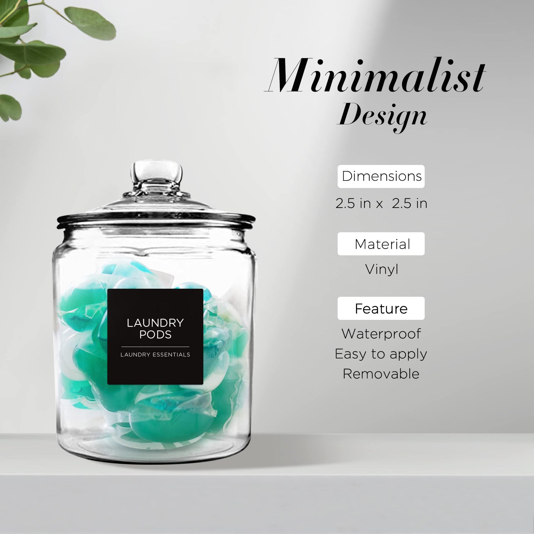 - THOUGHTFUL SIZE - These laundry room labels for glass jars come in a size of 2.5*2.5 inches, fitting perfectly on different sizes of containers. The uniform storage system created by these label stickers eliminates the frustration of searching for misplaced items, bringing order and efficiency to your laundry room.