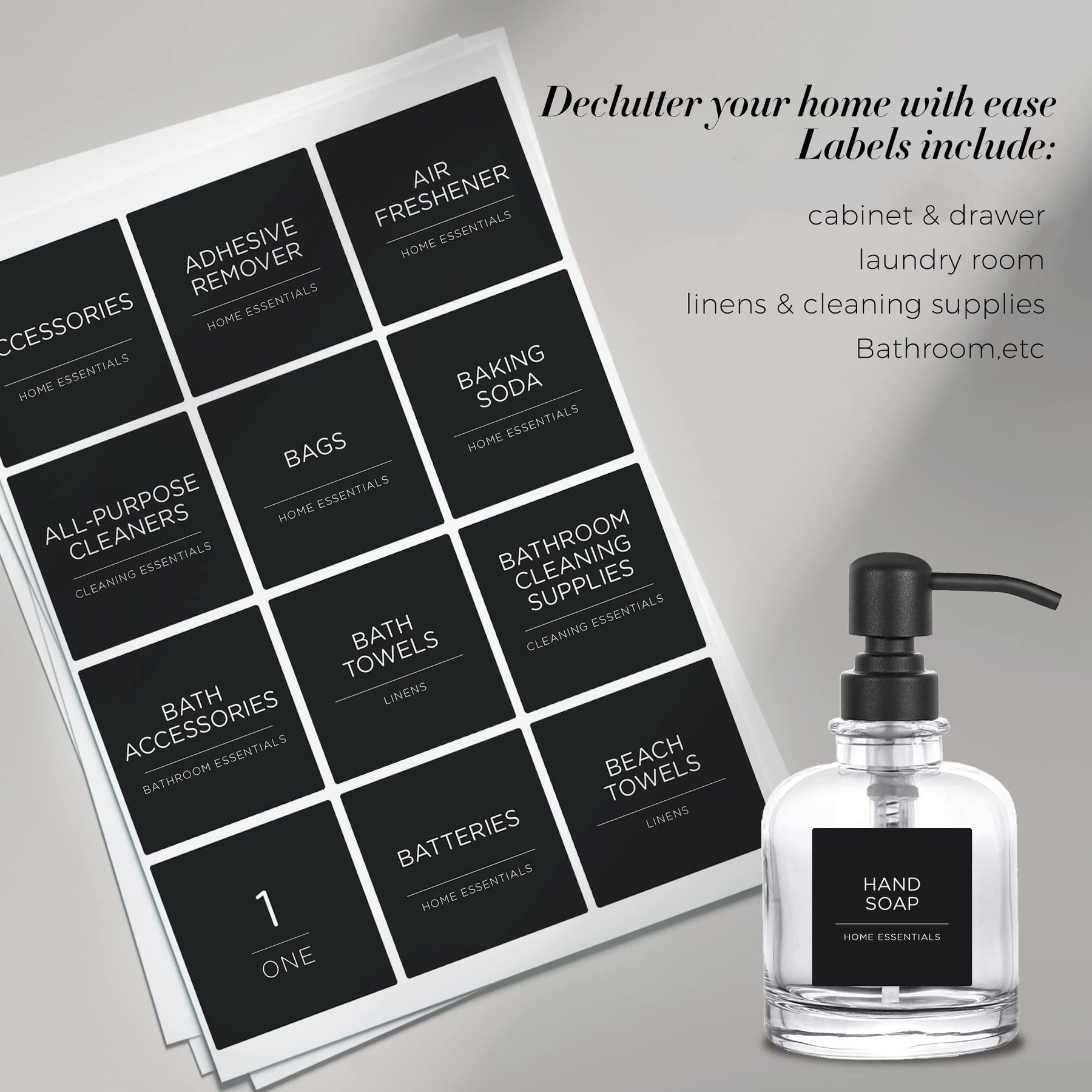 - Original All-Purpose Labels – 144 PCS Minimalist Laundry Room Labels Set, Water Resistant Stickers,Water/Oil Resistant Stickers for Laundry Room, Linen Closet Home Bathroom and The Beauty Organization(Black by v2croft