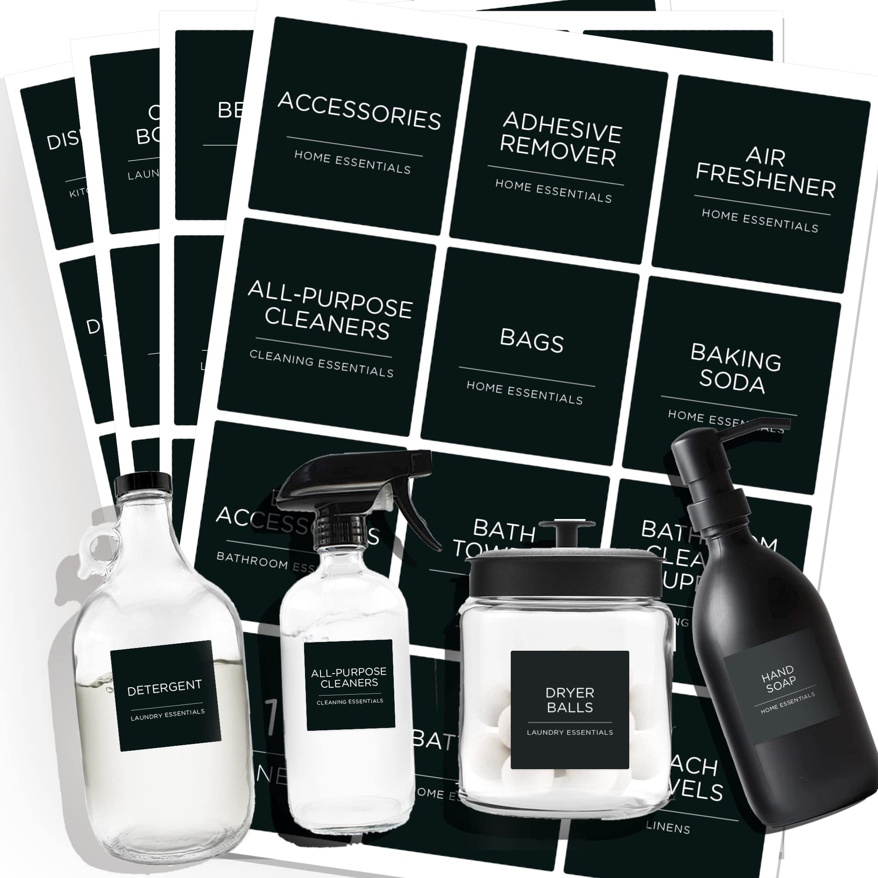 - MINIMALIST DESIGN - No messy handwriting, our laundry labels for containers using white minimalist fonts and pre-printed on a matte black background. These easy to read cleaning labels make finding and sort laundry items quick and easy. Add a stylish touch to your laundry room decor, enhancing the overall aesthetic.