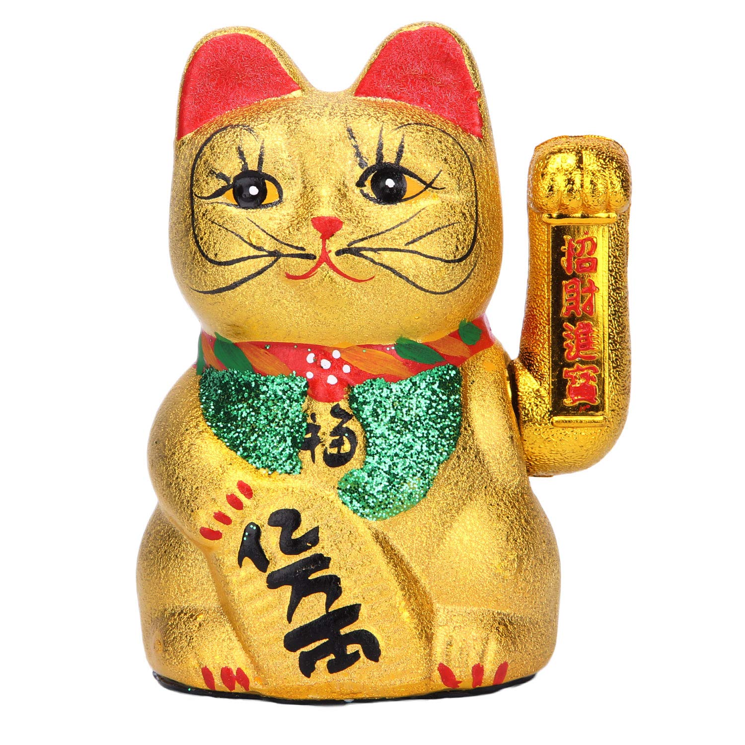 - Traditional Chinese Style - Features gold tone shiny glaze ceramic and cute kitty with waving hand.