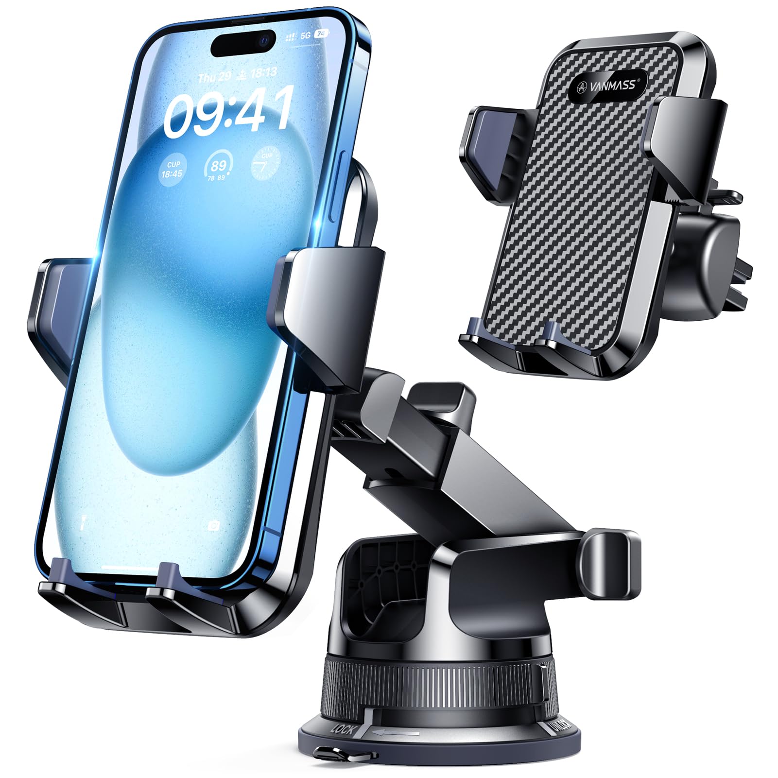 - Original Cradles – [2024 Upgrade Phone Holders for Your Car [Super Suction Cup] Cell Phone Mount Car Dashboard Window Vent Desk Fit for iPhone 15 Pro Max 14 13 Universal Handsfree Automobile Vehicle Cradle by VANMASS