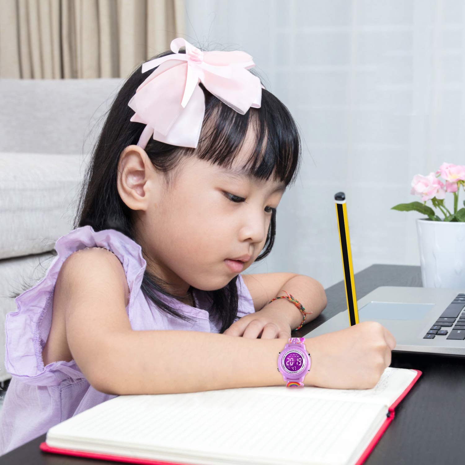 - FASHION MULTI-FUNCTION: Stopwatch, hour minute, calendar, alarm clock, LED backlight can describe time from a variety of angles, and help your kids learn how to read time. LED backlight makes kids easy to read time clearly at night, helps kids develop good habits. We strongly recommend it for kids 3-10 years old.