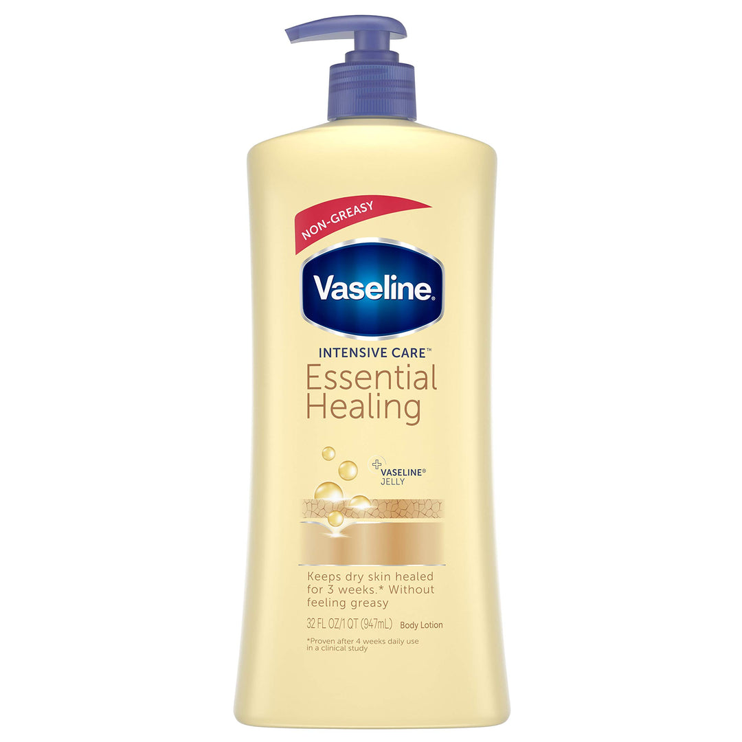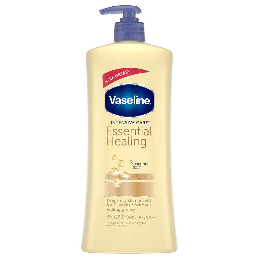 - Vaseline Intensive Care Essential Healing Body Lotion moisturizes dry skin