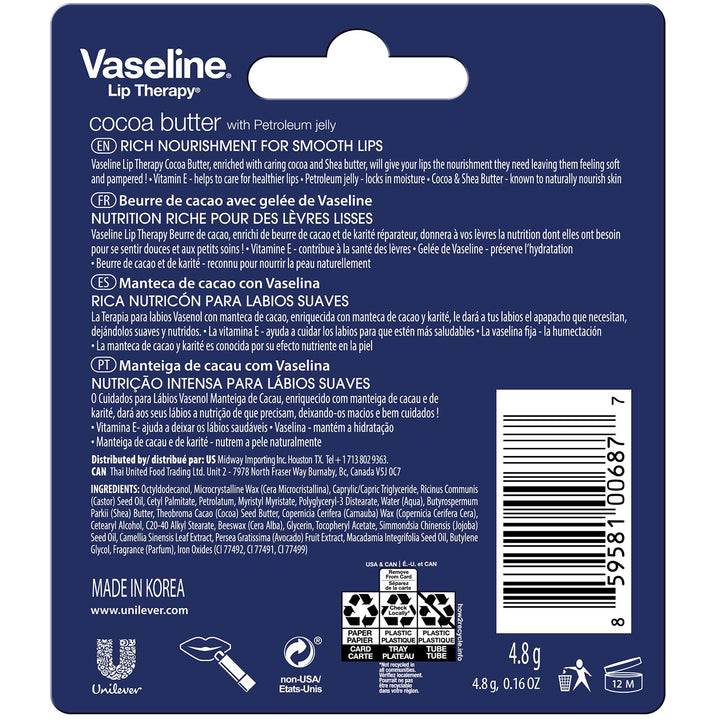 Discover the authentic Lip Therapy Cocoa Butter (3 Pack)… by Vaseline, part of our Balms collection. Imported directly from the USA and sourced from trusted suppliers, this product is 100% authentic and delivered anywhere in India at the best price.