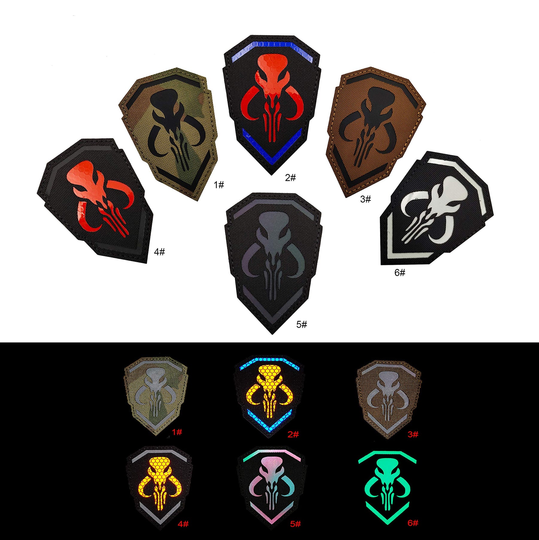 2,Reflective Mythosaur-Badge with hook and the loop backing for attachment to Hats and Gear